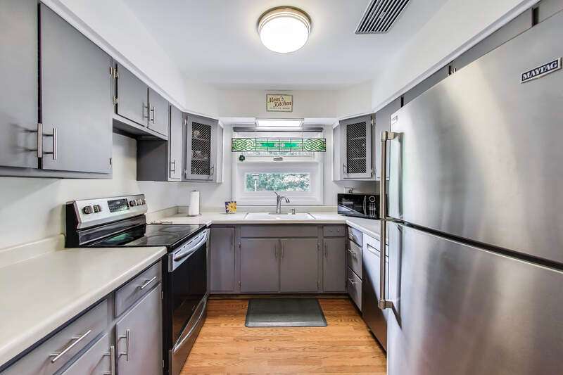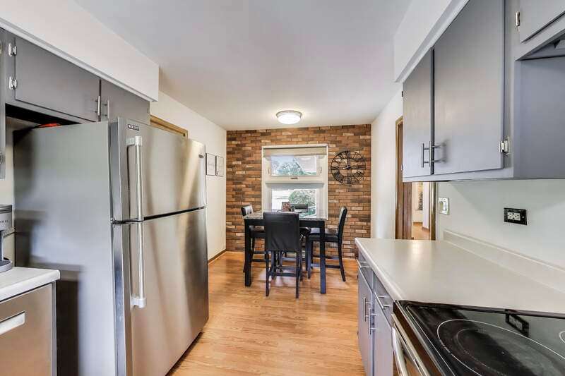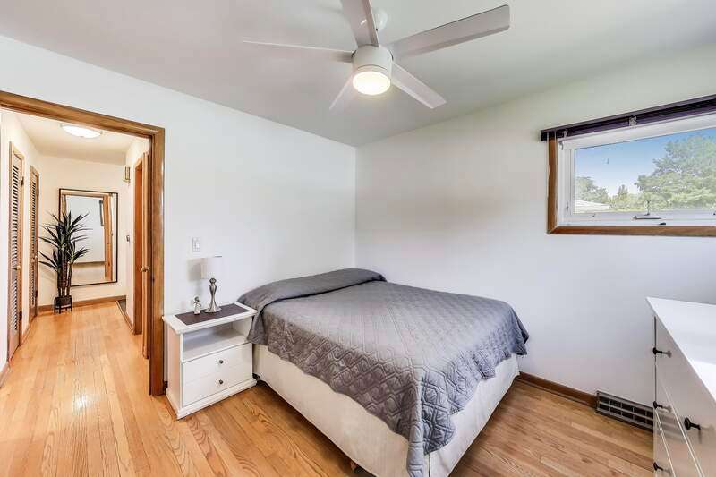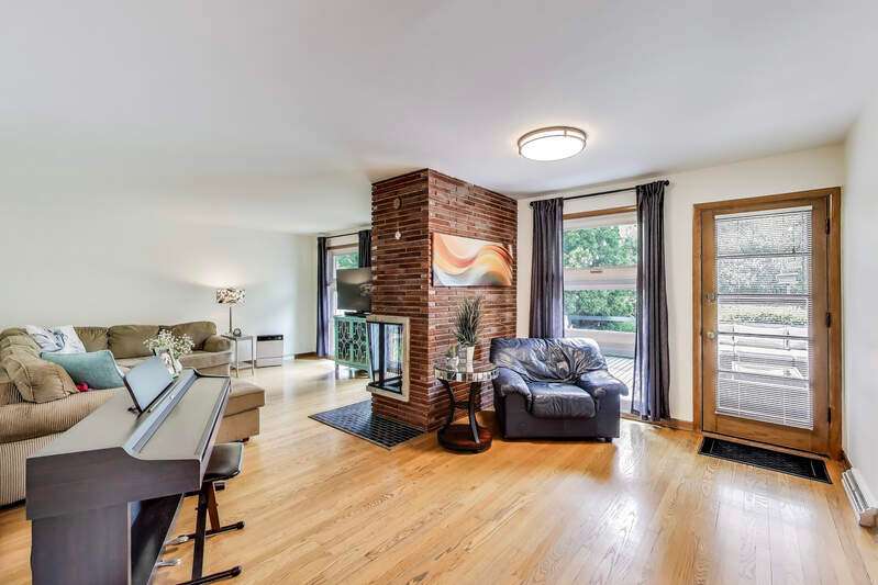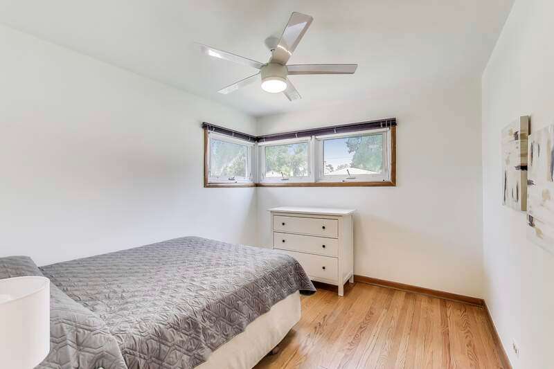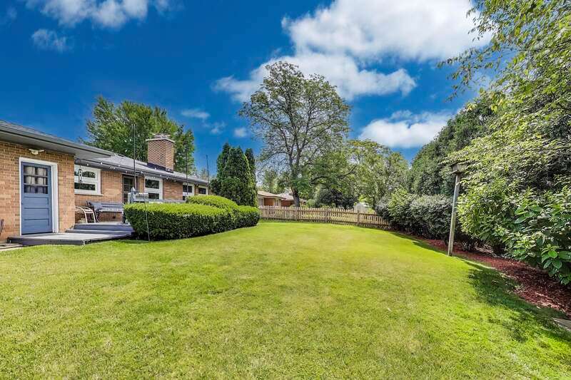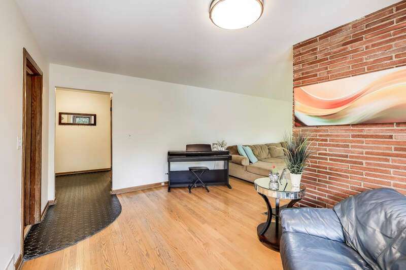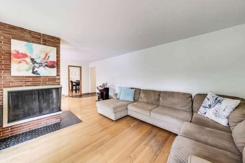 Inviting 3 bedroom ranch near Lions Park! Welcome to this beautifully maintained home featuring a desirable reverse layout and a sunlit living room with a charming wood-burning fireplace overlooking the fully fenced backyard and deck-perfect for entertaining or relaxing. Enjoy the warmth of hardwood flooring throughout. Eat in kitchen with newer appliances. Three generously sized bedrooms with great closet space. The expansive basement nearly doubles your living area, offering ample room for recreation, storage, and even a walk-in clothes closet. Peace of mind comes with numerous recent updates: windows, roof, gutters, fascia, soffits, chimney rebuild and furnace all approximately 2 years old; A/C just 3 years old. Sewer line replaced 5 years ago. A wide driveway adds everyday convenience. Ideally located just a block from Lions Park School and the site of brand-new park district facilities coming soon. Plus, you're just minutes from the Metra, shops, and restaurants in town. This home blends comfort, charm, and location-don't miss it!