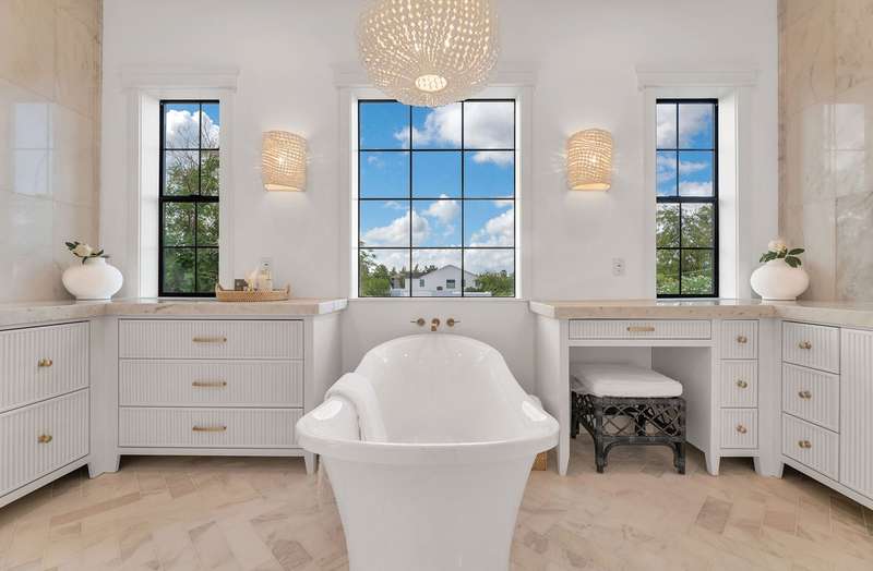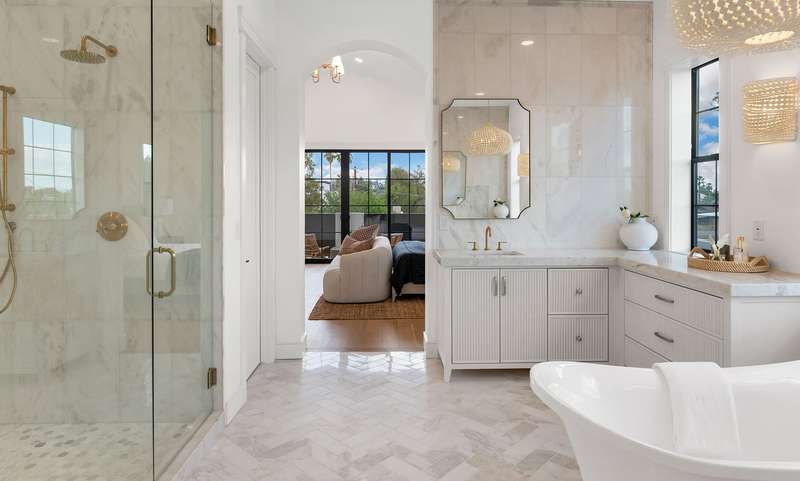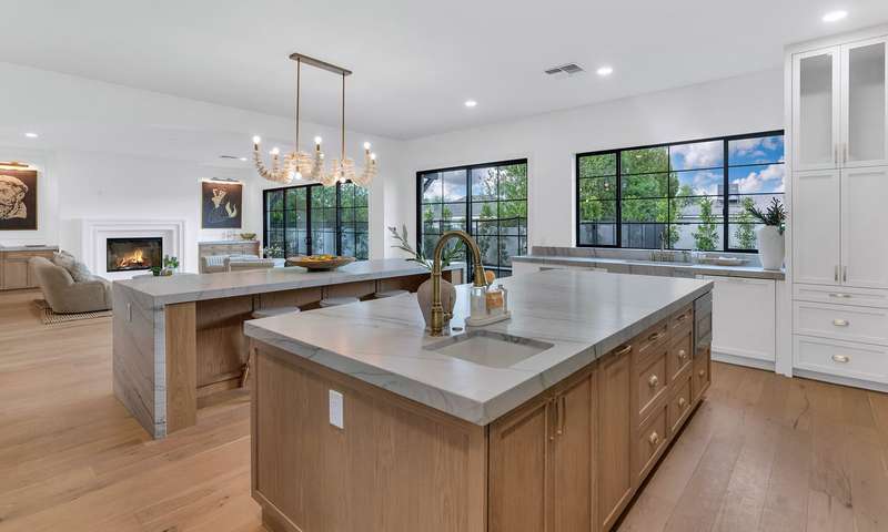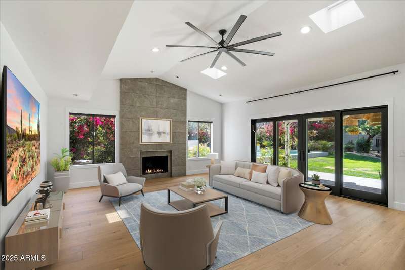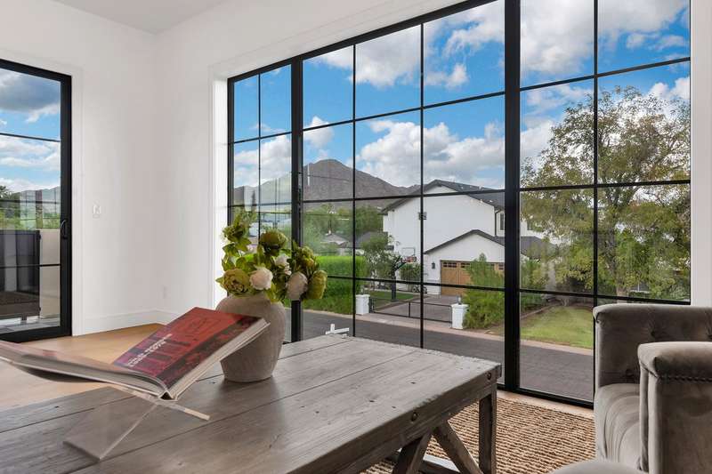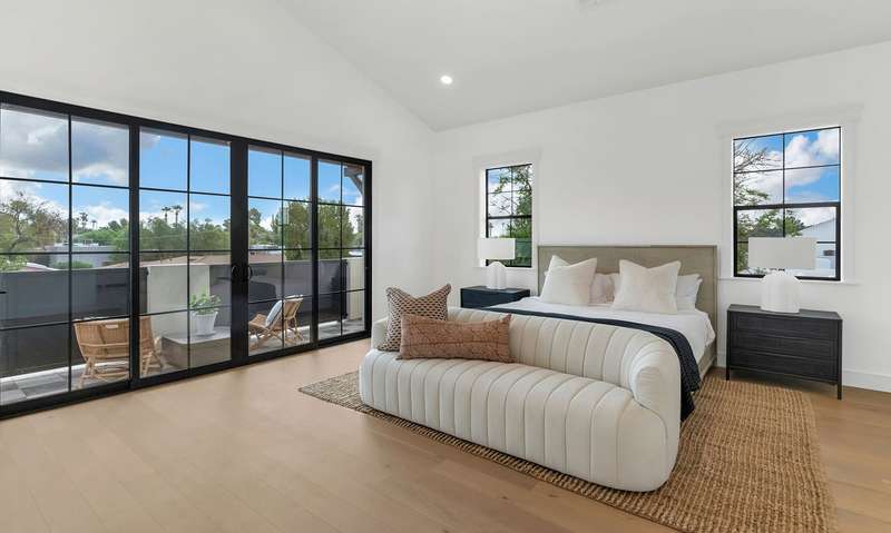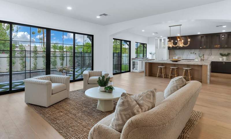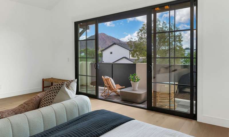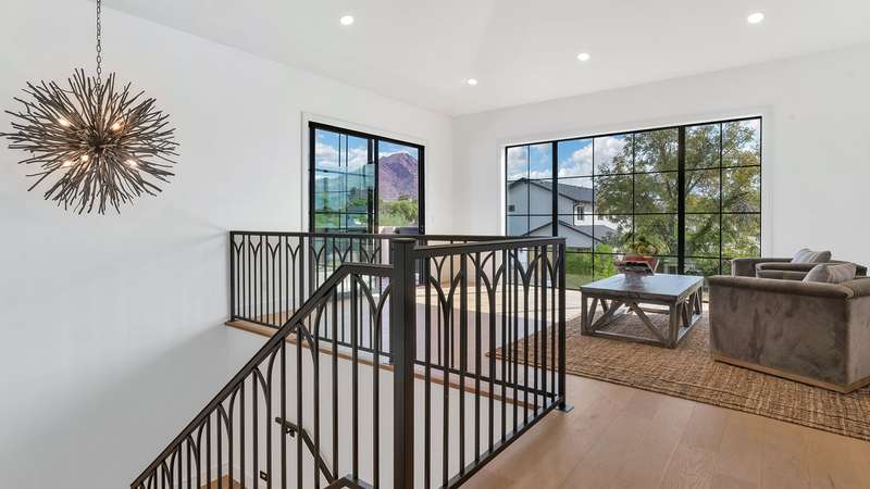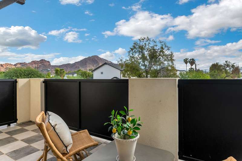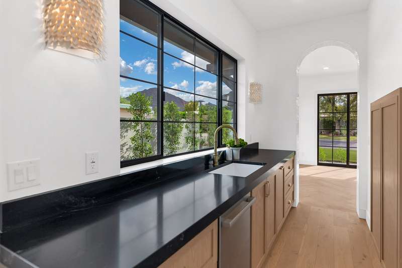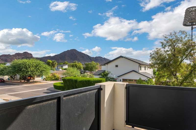 Experience elevated Arcadia living with this stunning new build in the Hopi school district. Spanning 4,557 sq ft, this thoughtfully designed home offers 5 bedrooms, 5.5 bathrooms, a formal dining area and an upstairs flex space, all showcasing breathtaking Camelback Mountain views. The home features a chef's dream kitchen complete with dual oversized islands & Thermador appliances. A walk-through butler's pantry offers direct access to the built-in outdoor grill, perfect for entertaining. The luxurious primary suite boasts Camelback Mountain views and a spa-like marble bathroom. All guest bedrooms are ensuite, with two featuring unique loft spaces ideal for kids or additional play areas. Step outside to a fully landscaped backyard oasis, complete with lush ficus, a new pool, and room to relax or entertain. Curb appeal shines with a cobblestone driveway, custom wood garage door, brick accents, and black-and-white checkered flooring at the outdoor entry.