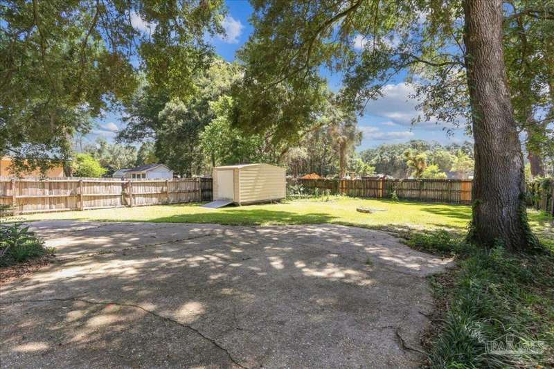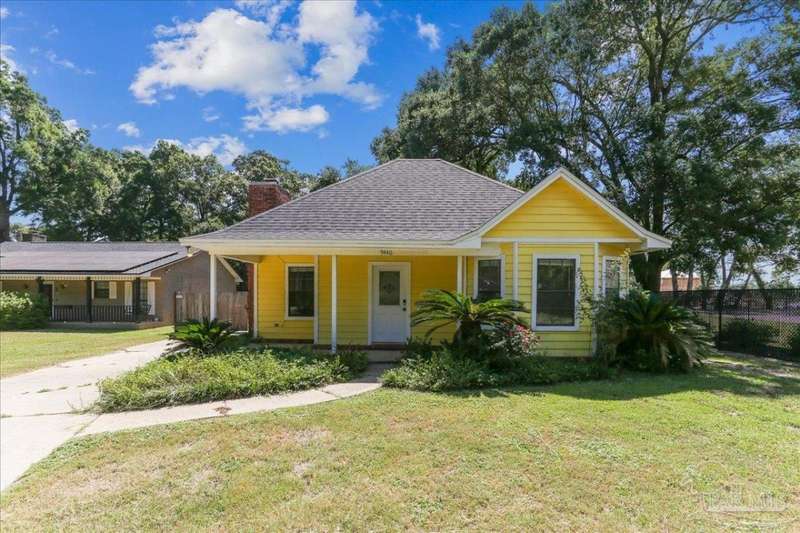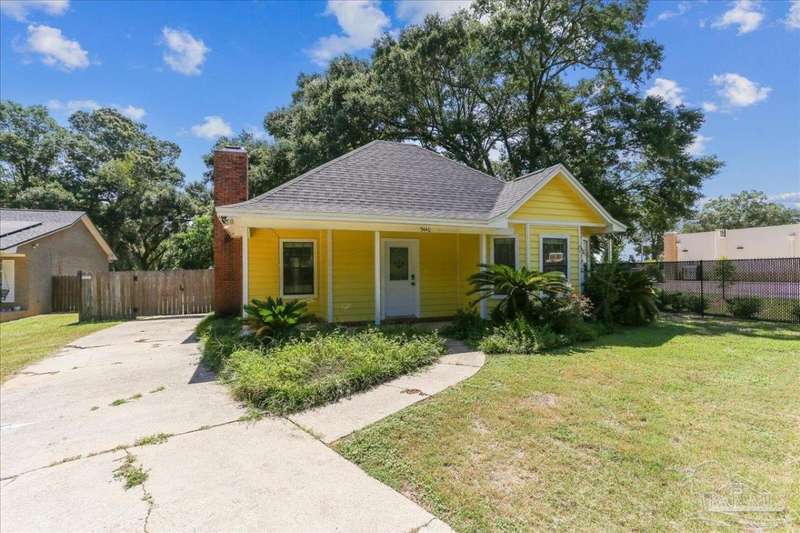 Charming 3-bedroom, 2-bath split floor plan cottage with a spacious and inviting layout. The open design offers plenty of room to relax or entertain, with natural light flowing throughout the home. Enjoy the privacy of a thoughtfully separated primary suite, complete with direct access to a covered patio-perfect for morning coffee or evening unwinding. The family room also opens to the patio, creating a seamless indoor-outdoor living experience. The enclosed garage features over 400 square feet of additional heated and cooled space and opens up to the large backyard, offering endless possibilities for a bonus room, office, or home gym. The kitchen offers ample storage and counter space, ideal for everyday living. Priced so you have room to personalize and make your own or just move right in. Both bathrooms are well-appointed, and the secondary bedrooms are generously sized. Located in a quiet, walkable neighborhood just steps from restaurants and shopping. Move-in ready,new roof, and priced to sell-don't miss this opportunity!