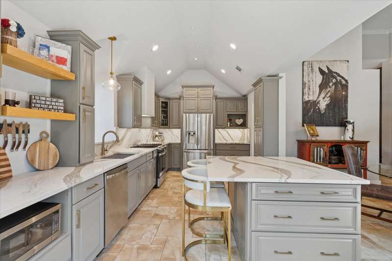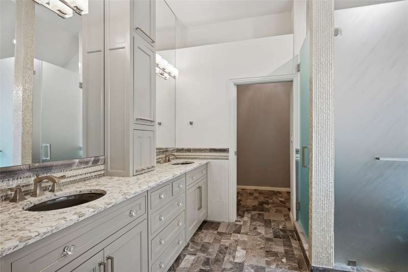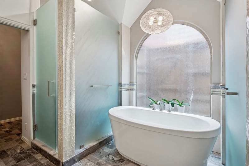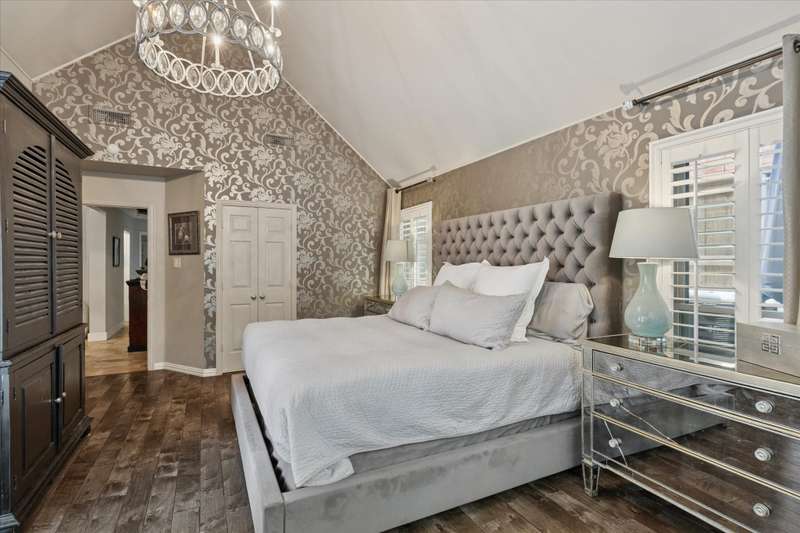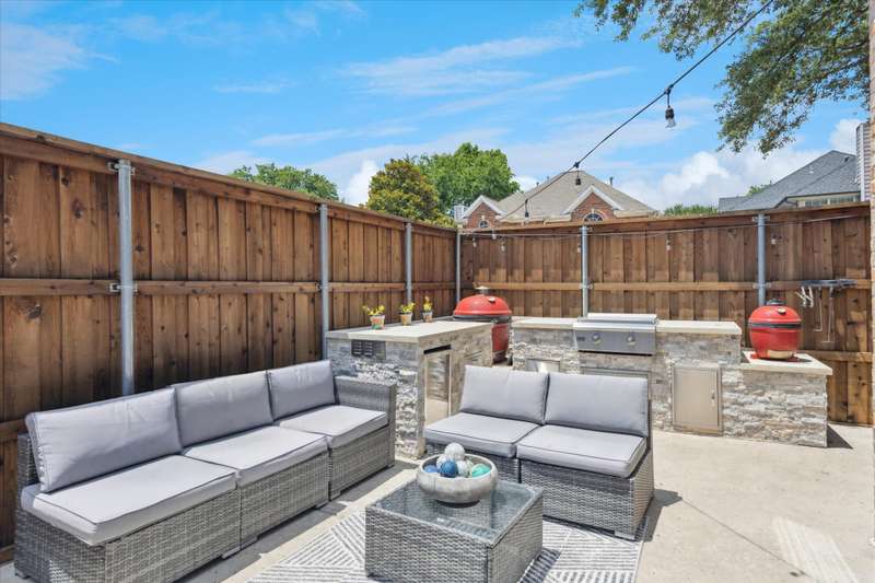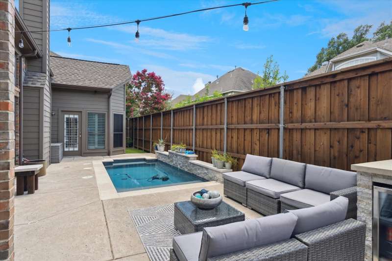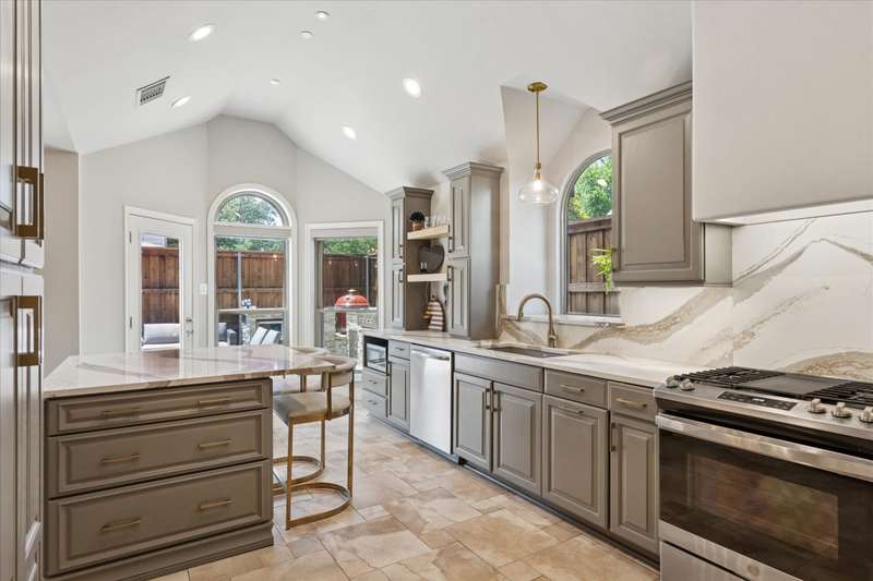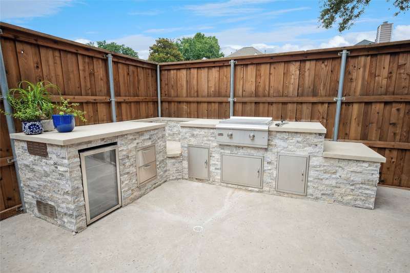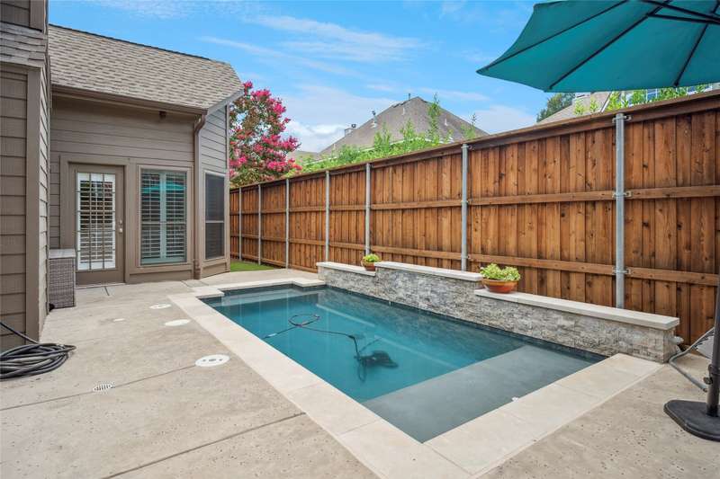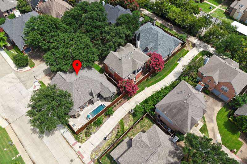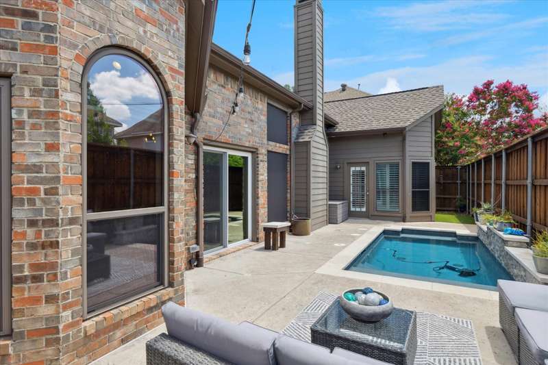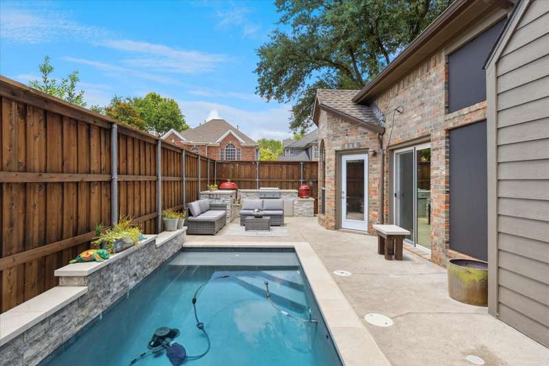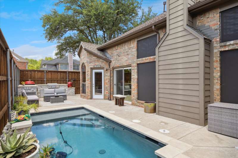 One story, one-of-a-kind Addison retreat with pool! Located on desirable corner lot this property is a move-in ready 3 bedroom, 2 bath home. A modern, 8ft iron and glass front door leads you into light filled open floor plan. Soaring ceilings accent the thoughtfully designed living space.Designer-chef kitchen features neutral colors, Quartz counter tops, gas drop in oven-range and stainless appliances. Adjacent dining space ensures a seamless flow for todays living.Attractive gas log fireplace anchors the living area with views of patio perfection. Outdoor kitchen features a Blaze, 30 inch, stainless steel flat top griddle and a special place for your Green Egg. Sleek pool with chiller ideal for cooling off during Texas summers. Home backs to popular walking trails enjoying the privacy of distance from a back yard neighbor.Oasis-like primary bedroom boasts ensuite bath featuring a free standing Maxx tub, dual vanities, separate walk-in shower, linen closet storage. Two additional bedrooms provide flexibility for guests, office or hobbies. Guest bath offers stylish lighting, walk in shower and quartz counter top.Two car attached garage with front-facing double doors Enjoy access to community amenities: Addison Athletic Club (recently renovated and offering $10 lifetime memberships for Addison residents), Les Lacs Park (pavilion, trails, tennis and pickleball courts, playground, and scenic pond). Conveniently located near some of Dallas' best dining and shopping, top-rated private schools, and Brookhaven Country Club.Dont miss this opportunity to own a very special home in a great neighborhood.
