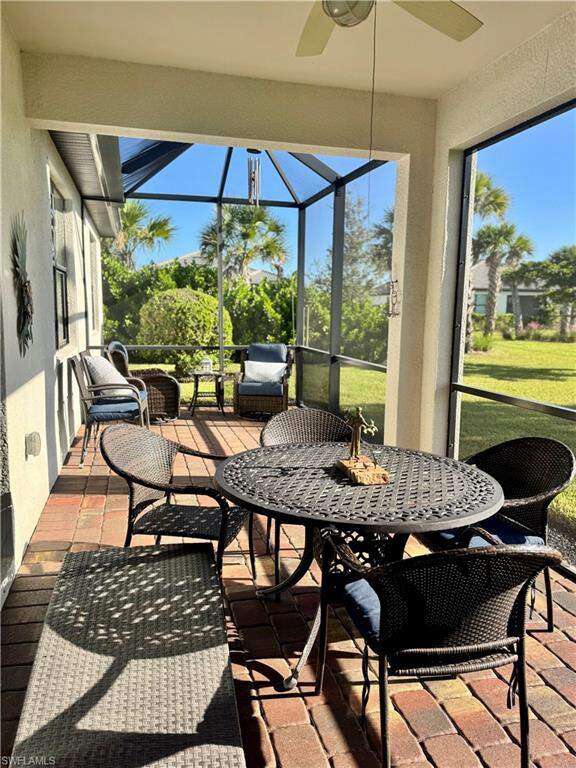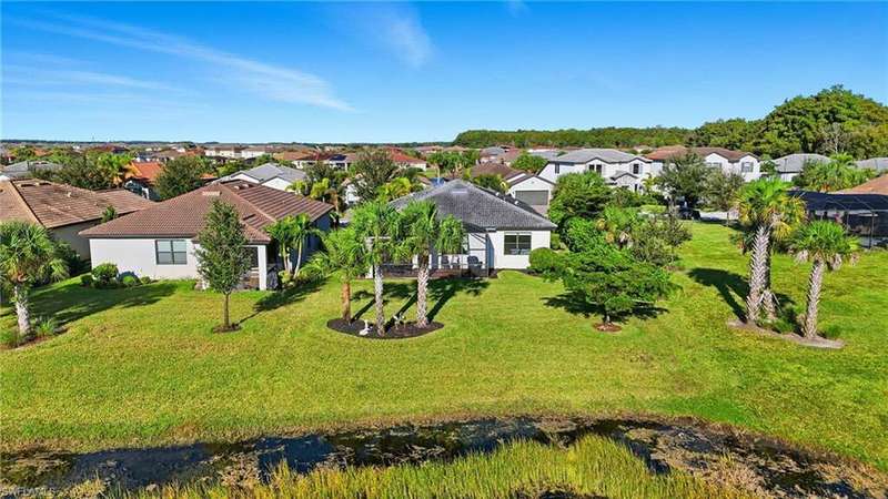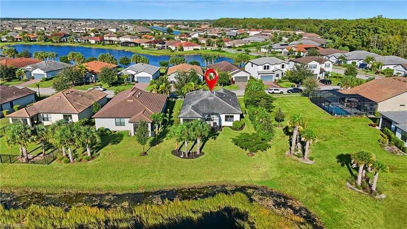 Stunning Lake Views & Exceptional Upgrades - A Home You'll Fall in Love With! Welcome to your dream home in the sought-after Hampton Lakes section of River Hall, where elegant design meets serene waterfront living. Built in 2018, this meticulously maintained Marina floor plan offers 3 spacious bedrooms, 2 bathrooms, and an extended lanai designed to maximize enjoyment of the breathtaking lake views. From the moment you arrive, you'll be captivated by the exceptional curb appeal, featuring updated landscaping, and a brick paver driveway. Prime Oversized lot Advantage: Enjoy the luxury of an oversized lot upgrade, meaning you only have 1 neighbor-offering enhanced privacy, quieter surroundings, and more open space to relax and entertain. Imagine sipping morning coffee or hosting evening gatherings on the expansive 10x26 lanai, with plenty of room in the backyard to add a pool. Inside, the open-concept layout boasts granite countertops throughout, large tile flooring in main areas, and a stylish modern kitchen equipped with a central island, stainless steel appliances including a BOSCH dishwasher and Samsung range, a designer backsplash, and a pantry. A sliding glass door seamlessly connects the kitchen to the lanai, creating an ideal indoor-outdoor living space. The owner's suite includes double sinks, a tiled shower with premium fixtures, and a generous walk-in closet, while all bedrooms feature plush carpeting, ceiling fans, and ample storage in their walk-in closets. This home is loaded with upgrades. The extended 2-car garage provides extra storage or workshop space. Located in a gated community with resort-style amenities like a 14,000 sq ft clubhouse, lagoon pool, fitness center, tennis/pickleball courts, and miles of walking paths, this property is perfect for permanent residence or seasonal escape. Priced to sell quickly in Alva's desirable River Hall enclave-schedule your private tour today and don't miss this one-of-a-kind gem!