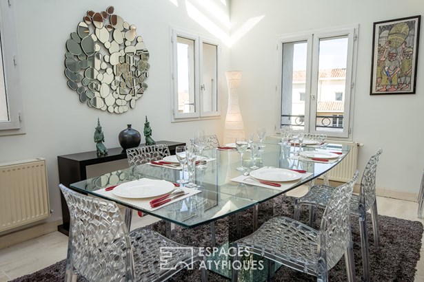 Espaces Atypiques presents a rare opportunity with this 220 m2 apartment, combining historic charm and high-end amenities in the heart of Montelimar.