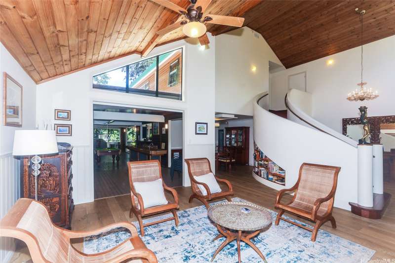 An Upper Nuuanu "Old Pali" Private Hidden Retreat Surrounded By Large Mature Trees, Beautiful Plants & The Meandering Bubbling Niniko Stream (Bridged By Homeowner)-Storied Prestigious Old Pali Road In Nuuanu Valley-22,916 Square Feet-4 BR Home With Three Large 1BR Rentals All With Kitchen, Laundry & Full Baths-In 2001, The Homeowner (A Homebuilder/Visionary/Master Craftsman) Removed Trees & Created 6,706 Square Feet Of Living Space With The Finest Materials From New Zealand-Very Well Maintained-71 Solar PV Panels & Two Tesla Batteries Combined With Tenants Electricity Contribution Nets Homeowner Approximately $350 Per Month-Plus $8,800 Tenants Rents-2024 New Standing Seam Aluminum Roof On Main House-Unit #1 (Main House) 4 BR 2.5 BA Two Story (3,683 SF) Many Unique Details Including Inspired Woodwork, Spiral Staircase, Coral Fireplace & 3 Car Garage (Potentially Rentable For $9K)-Rental Unit #2 Upstairs Above Separate Workshop With Loft & 1 Covd Parking, Lease Thru March (1,057 SF)-Rental Unit #3 Under Main House 2 Tandem Covd Parking, Month-Month (1,106 SF)-Rental Unit #4 Two Story 1 Covd Parking, Month-Month (860 SF)-Extra Parking-Many Fruit Trees-Just Off Pali Highway
