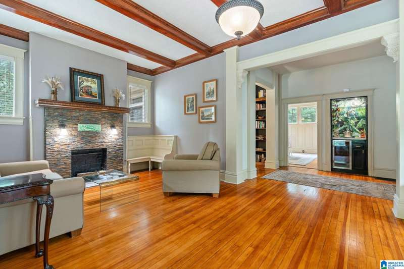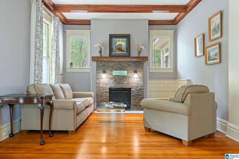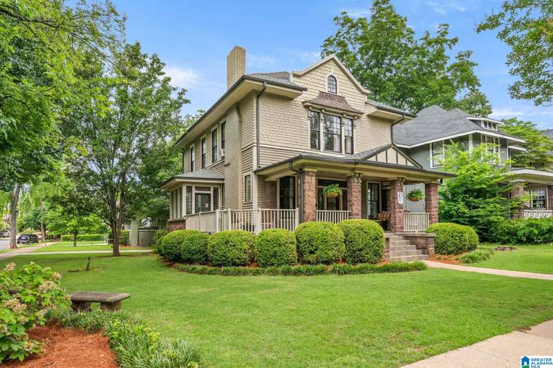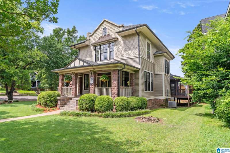Step into timeless charm with this stunning 3-bedroom, 2.5-bathroom historic home built in 1909 & proudly listed on the Jefferson County Register of Historical Places. Boasting original architectural details & modern updates, this home offers the perfect blend of classic elegance and contemporary luxury. From the moment you approach, you’ll be captivated, starting with the wraparound front porch with panoramic views of Vulcan statue. Inside, soaring 10-foot ceilings, hardwood floors, & intricate coffered ceilings in the LR & DR create a grand atmosphere. The kitchen showcases granite countertops, stainless-steel appliances and a new Samsung refrigerator. Also on the main floor, a cozy study with built-in bookcases, glass-windowed sunroom, half bath, convenient dry bar, expansive back deck, with a built-in hot tub and screened-in porch. With its rich history, architectural details, and modern comforts, this rare property offers a unique opportunity to own a piece of Birmingham’s legacy.