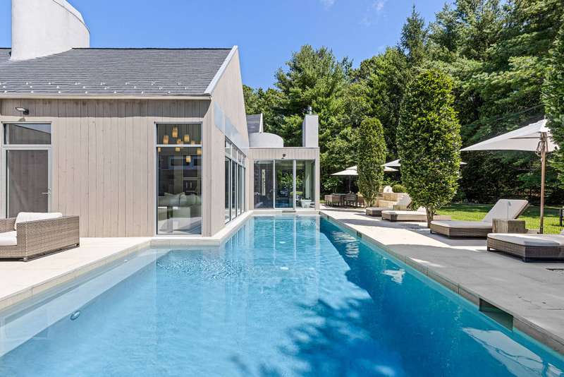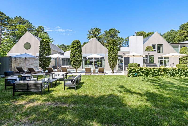 Architectural Masterpiece Between East Hampton & Sag Harbor Rental Registration #: 24-1387 Welcome to 7 Rolling Wood, a world-class Hamptons retreat designed by renowned architect Bruce Nagel-an entertainer's dream and a sanctuary of modern elegance and timeless style. Ideally located between East Hampton Village and Sag Harbor, this extraordinary estate offers convenient access to top-tier dining, shopping, and iconic beaches, all while nestled in complete privacy on 2 meticulously landscaped acres. Inspired by the clean lines of contemporary design and the rustic charm of classic barn architecture, this 7,000+ sq ft compound is composed of three interconnected modern barns that create a cohesive yet dynamic flow between living, entertaining, and retreat spaces. The heart of the home is a dramatic great room with soaring ceilings, walls of glass, and a striking fireplace-perfect for seamless indoor-outdoor entertaining. Multiple patios surround a heated, gunite saltwater pool and offer plenty of space for dining, lounging, and unwinding under the stars. The primary suite is its own private oasis-set apart in a dedicated structure with 25-foot ceilings, a fireplace with a cozy sitting area, a luxurious en suite bath with soaking tub, and a secluded courtyard with a spa. Five additional en suite bedrooms are housed in a separate guest wing, complete with a library/sitting room featuring high ceilings, a wood-burning fireplace, and panoramic views of the beautifully landscaped grounds. The chef's kitchen is designed to impress, outfitted with dual Wolf ovens, Sub-Zero side-by-side refrigerators, double dishwashers, stone countertops, a wet bar, and beverage center-ideal for hosting or everyday luxury. The finished lower level is designed for comfort and wellness, including a spacious media lounge and office, fully equipped gym with Peloton, private sauna and bath, a cedar and glass wine cellar, and double-stacked laundry room. Additional amenities include a gated entry, landscape lighting for evening ambiance, a dramatic formal entrance with reflecting pools, a three-car garage, outdoor shower, and a house manager provided at the owner's expense for seamless summer living. 7 Rolling Wood offers a rare combination of modern design, thoughtful craftsmanship, and effortless comfort-your gateway to an unforgettable summer in the Hamptons. Listing ID: 894636