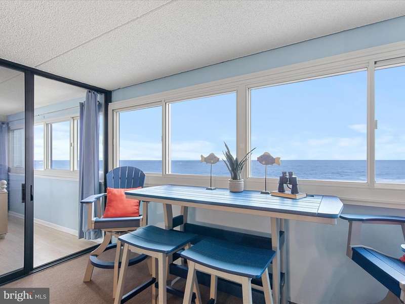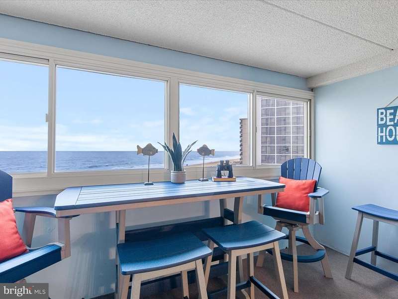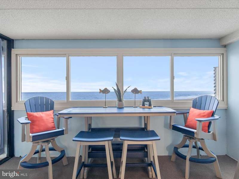 Welcome to the Atlantis Condominiums in Ocean City, MD, where coastal living meets comfort and style. This beautifully maintained 2-bedroom, 2-bath direct oceanfront condo offers the perfect balance of luxury, relaxation, and convenience. Located on the 5th floor, the unit is ideally situated, not too high and not too low, providing breathtaking, unobstructed views of the Atlantic Ocean while keeping you connected to the lively energy of the beach. Inside, an open and inviting layout is designed to maximize natural light and showcase the ocean views from nearly every angle. The spacious living and dining area flows seamlessly, creating the perfect setting for relaxing with family or entertaining friends. The private enclosed balcony with sliding windows extends your living space year-round and serves as a front-row seat to dazzling sunrises, afternoon breezes, and evening cocktails with the soothing sound of the waves. The primary bedroom retreat is especially captivating, featuring a large picture window that frames sweeping ocean vistas. Both bedrooms are comfortably sized, and the condo includes two full baths. For added convenience, a washer and dryer are included. New flooring throughout complements the neutral coastal palette, while the tasteful furnishings, also included in the sale, make this a move-in-ready retreat. Life at the Atlantis means enjoying a resort-like lifestyle every day. This well-managed, secure building offers outstanding amenities, including an oceanfront Olympic-sized pool, year-round security, on-site and in-house management, three high-speed elevators, a newly updated lobby, a convenient snack shack, and even a designated dog-walking and relief area. With direct beach access just steps away, you'll always be close to the surf and sand. Whether you're seeking a vacation getaway, a full-time residence, or an investment property in one of Ocean City's most sought-after buildings, this condo checks every box. Fully furnished, lovingly maintained, and offering the kind of views you'll never tire of, this oceanfront gem at the Atlantis Condominium is ready to welcome you to your very own slice of paradise by the sea.