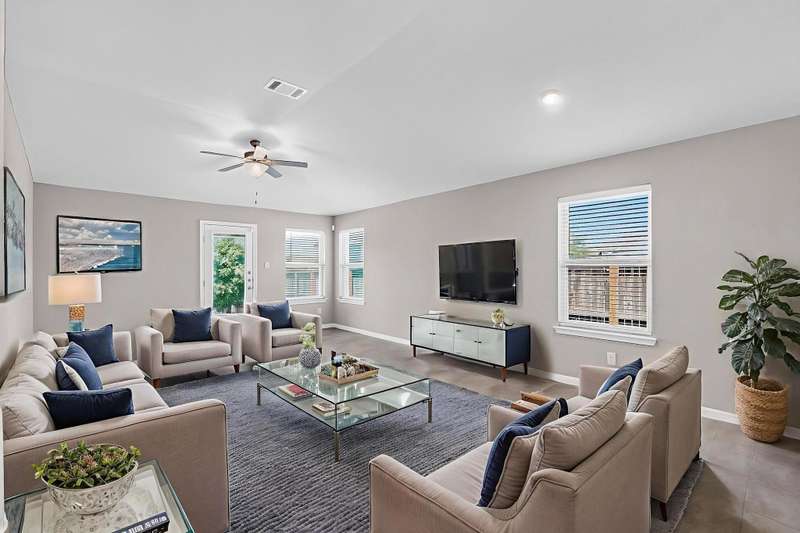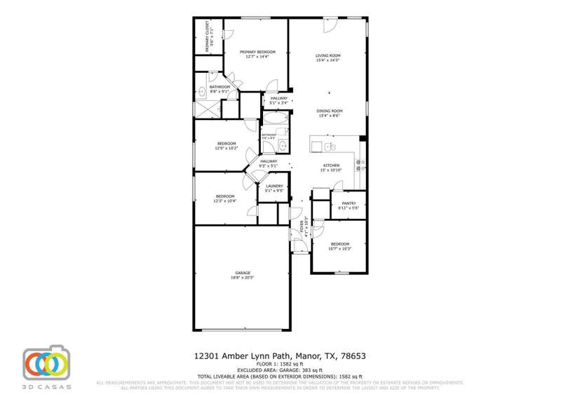 Brand new roof. New carpet installed in all bedrooms July, 2025! Charming One-Story Corner Lot Home in Manor with Spacious Layout and Thoughtful Updates Welcome to 12301 Amber Lynn Path, where comfort, functionality, and location come together! This beautifully maintained one-story home sits on a desirable corner lot and features 4 spacious bedrooms, a bright and inviting family room, and a formal dining area perfect for hosting guests or family gatherings. The heart of the home is the oversized kitchen, complete with granite countertops, a stylish tile backsplash, ample cabinetry, and an extra-large walk-in pantry for all your storage needs. New carpet is being installed in all bedrooms, giving the home a fresh, move-in-ready feel. Additional highlights include a tankless water heater for energy efficiency and continuous hot water, as well as a full sprinkler system to keep your lush backyard green year-round. Step outside to your covered back patio and enjoy the fully fenced, flat yard, ideal for play, pets, or relaxing evenings under the stars. The location couldn’t be better: just minutes to the community pool, park, scenic walking trails, and golf course. Whether you’re entertaining indoors or enjoying the outdoors, this home offers the space, comfort, and convenience you’ve been searching for!