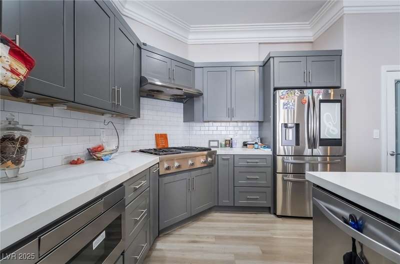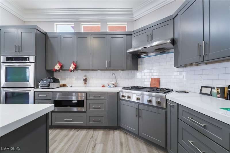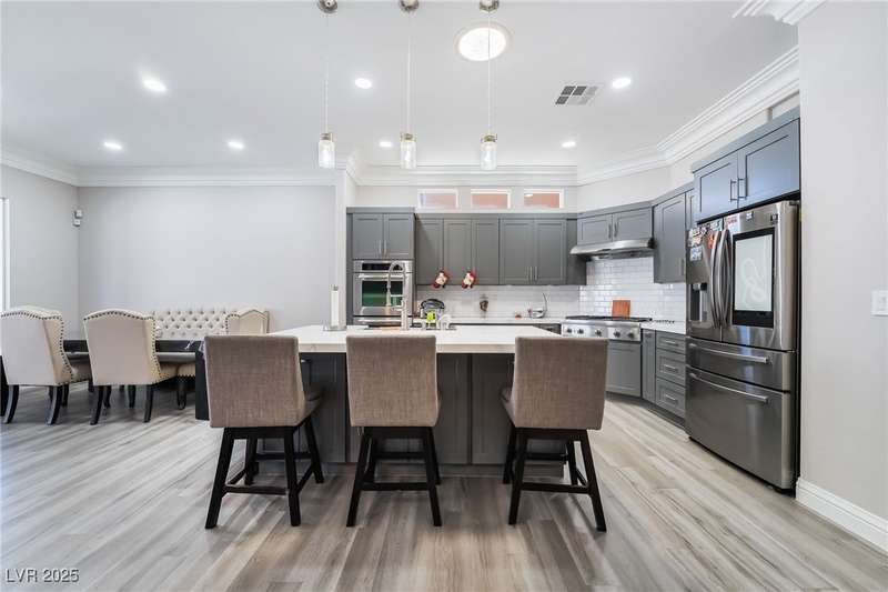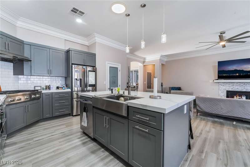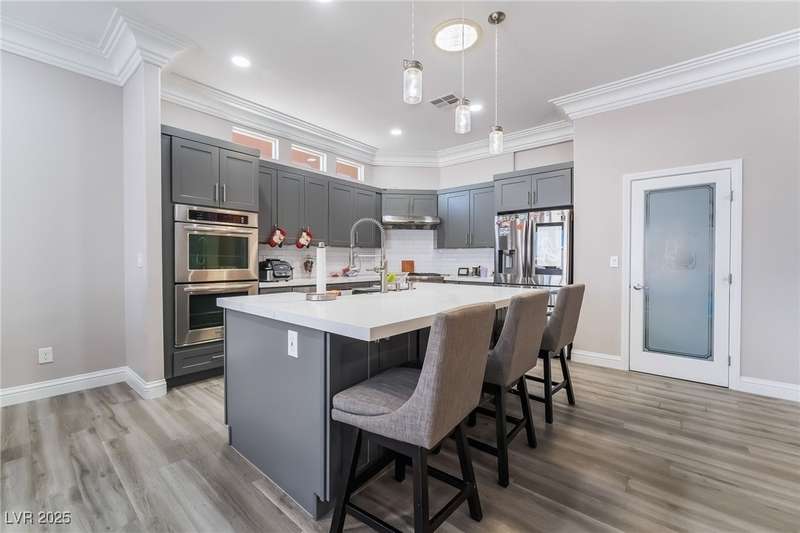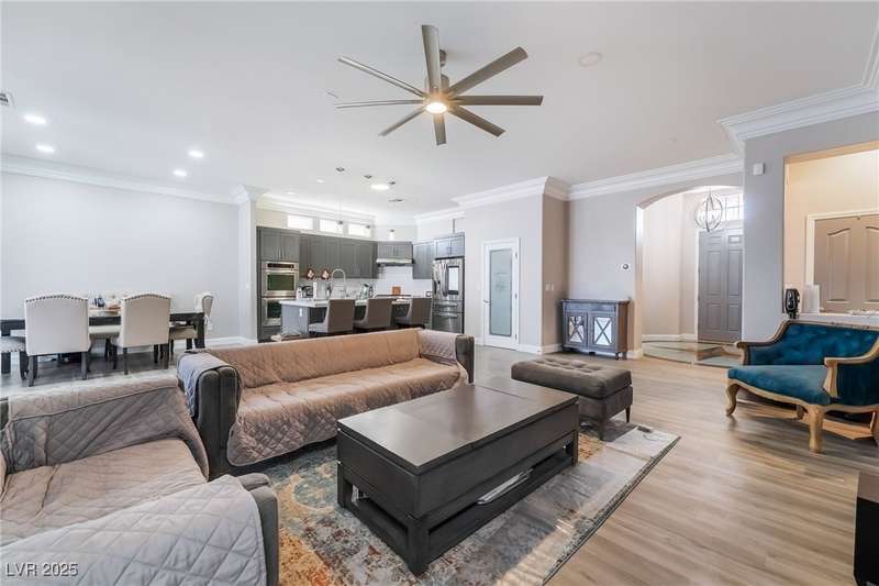 Welcome to your dream home, nestled at the end of a serene cul-de-sac on an oversized lot, offering unparalleled luxury and space. This remarkable residence boasts five spacious bedrooms and five elegantly designed bathrooms, complete with a charming casita for guests or additional living space. Car enthusiasts will revel in the expansive five-car and RV garage featuring a car lift, dual doors, and a convenient half bath. Step inside to discover the open floor plan that is adorned with luxury vinyl flooring, crown molding, and high ceilings. The heart of the home, the kitchen, is a chef's delight with custom cabinets, opulent quartz countertops, stainless steel appliances, dual ovens, and a spacious pantry. The outdoor oasis awaits with a modern pool, a covered patio and a cozy fire pit for those cooler evenings. Don't miss the opportunity to own this extraordinary home that combines elegance, functionality, and comfort in one perfect package.
