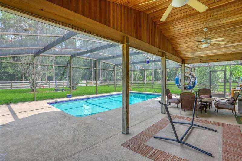 *Seller offering $5,000 credit to buyer to help with prepaids and closing costs!* Welcome to this beautifully maintained 3-bedroom, 2-bathroom custom-built home in the desirable Meadowglen neighborhood of Alachua. Situated on 1.33 acres, this property offers peaceful pasture views, mature landscaping, and a quiet setting just minutes from I-75, shopping, and local amenities. This 2001 home features 1,755 sq ft of living space, a spacious den with fireplace, vaulted ceilings, and a light-filled breakfast nook off the kitchen. The floor plan features a primary suite including a large en suite jetted bathtub, separate shower and walk-in closet. The 2-car garage provides ample storage with built-in cabinetry. Recent updates include a new HVAC system, new carpet, fresh interior paint, updated ceiling fans, and a newly rescreened pool cage. Enjoy outdoor living on the screened in lanai overlooking your private backyard pool home oasis. Meadowglen is a deed-restricted community with beautifully maintained homes and a low annual HOA fee of just $200 annually. Don’t miss the opportunity to own a well-maintained home on a spacious, private lot in a peaceful, established neighborhood.