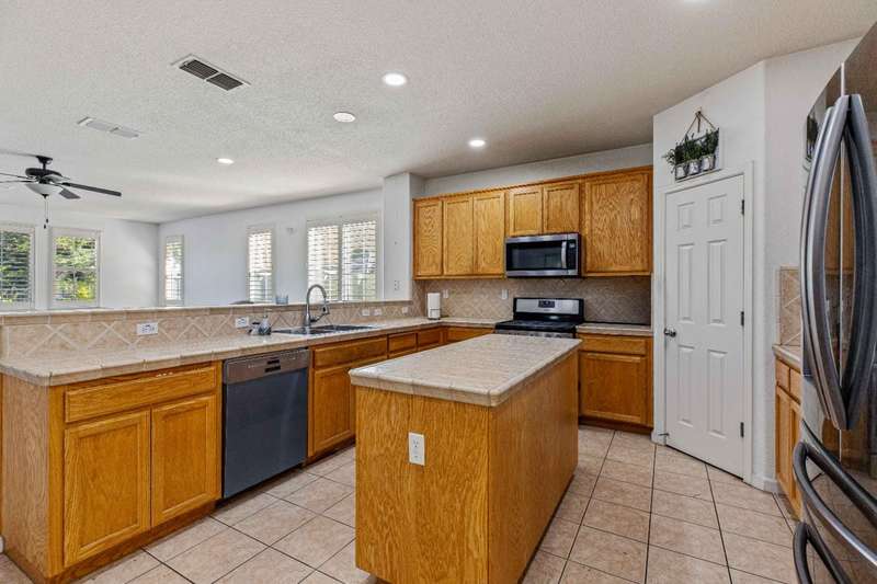 Welcome to 9015 Tee Box Ct - this property is offering nearly 3,000 square feet of elegant living space. Located on a peaceful court with scenic views, this 4-bedroom, 3.5-bathroom residence provides comfort and privacy. The thoughtfully designed floor plan features a downstairs bedroom with a full bath, perfect for guests or multi-generational living. Upstairs, you'll find a spacious loftideal for a media room, home office, or play areaalong with a convenient upstairs laundry room. Entertain with ease in the open-concept kitchen, which flows into a large living area with bar seating. Step outside to a private backyard where mature oak trees and hillside views create a serene, natural setting. This home is nestled within the secure, gated community of Diablo Grande, which offers 24-hour guarded entry. Enjoy the perfect blend of tranquility and convenience, with shopping just 15 minutes away and I-5 just 10 minutes away. Come, see and fall in LOVE with 9015 Tee Box Court!