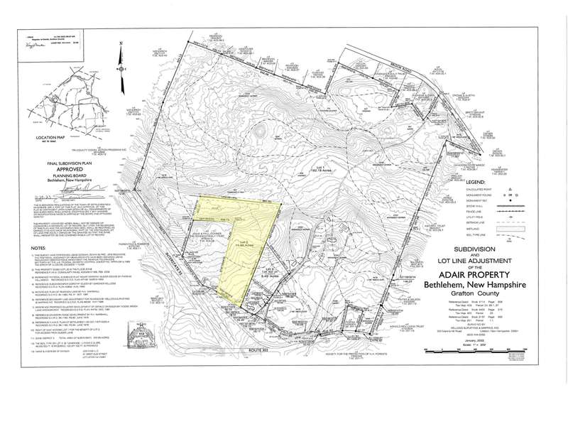 Location... Just minutes from Cannon Mountain, Downtown Bethlehem and Littleton, steps from the Adair Country Inn sits 14.86 acres with scenic vistas. Large enough to benefit from current use tax status, this opportunity lends itself as an excellent homesite, or zoning permits a myriad of other uses. Easy access off I-93 & Route 302. This lot was once part of the grounds of the Adair Country Inn, which were designed by famed landscape architects the Olmsted Brothers.