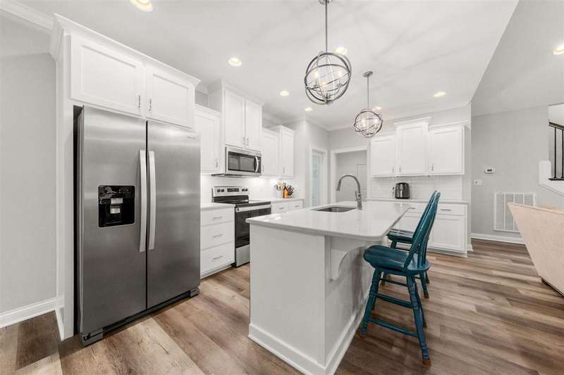 Stunning 4 bedroom, 2 1/2 bath home that's better than new! Featuring a spacious open floor plan, this home offers a versatile front room perfect for a formal dining room or home office. The kitchen shines with granite countertops, a large island, a walk-in pantry, and modern finishes. Relax in the master suite complete with a luxurious tub, tile shower, and dual vanities. Enjoy added convenience with a tankless water heater and an irrigation system. The back yard backs up to a peaceful tree line, offering privacy and a natural view. Immaculate and move-in ready-don't miss this exceptional home.
