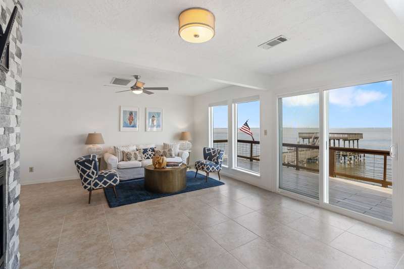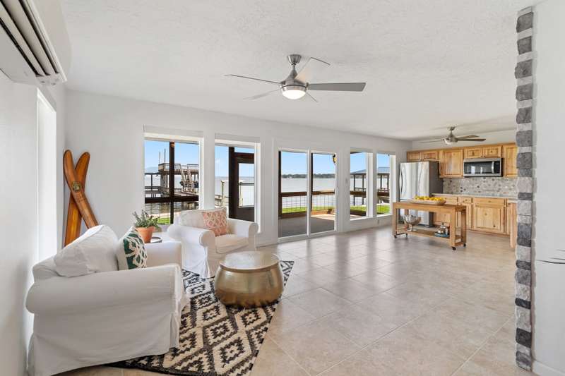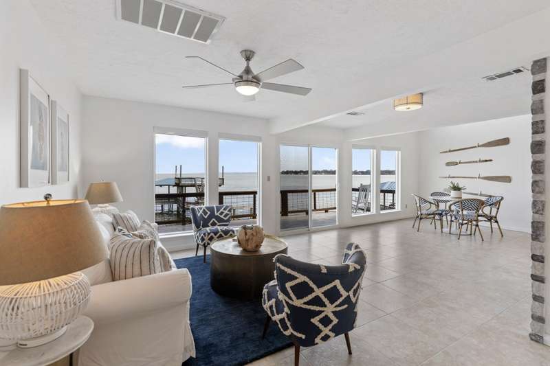 STUNNING OPEN WATER VIEWS FOR DAYS! This 3 story home offers everything you need to make your lake dreams a reality! You will fall in love with the 2-story updated boat dock that offers the most amazing views of the lake, not to mention the two stunning decks off the 1st & 2nd floor that allow for additional space to enjoy all year long! Take in the sunset from your very own screened-in porch right off of your first-floor entertainer's dream room perfect for hosting and/or an additional bunk room. The second floor greets you with an open kitchen/living/dining area, bedrooms, an in-home utility room and a full bath. The third floor offers a spacious primary suite & an additional loft space that overlooks the lake which is perfect for a home office, overflow sleeping or a private owner's retreat! The views in this home are breathtaking! Don't miss this opportunity to own on deep water, with stunning sunsets in a golf cart-friendly neighborhood! This home really does have it all!