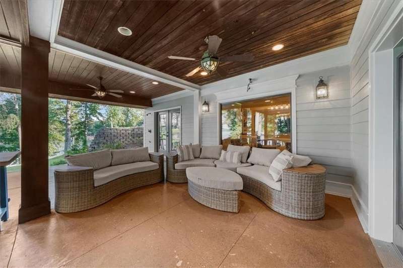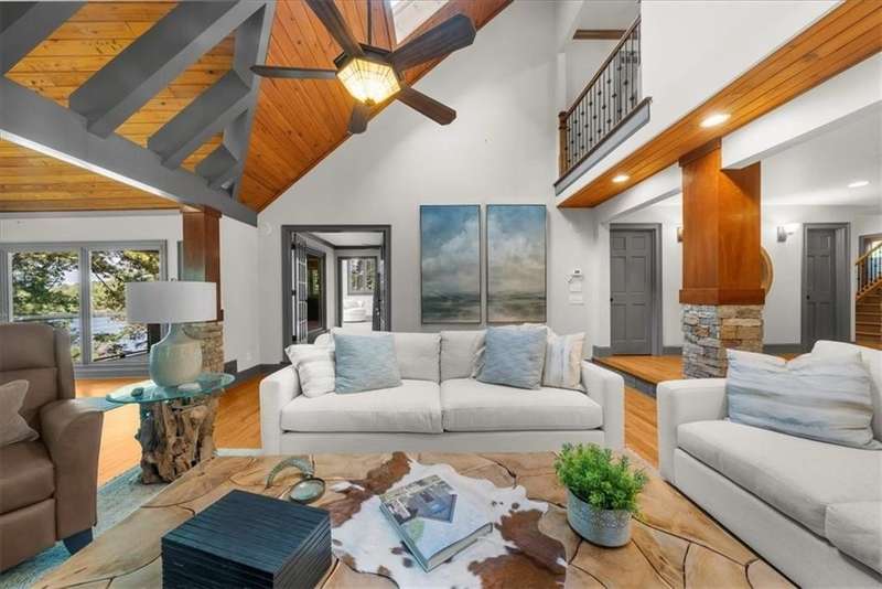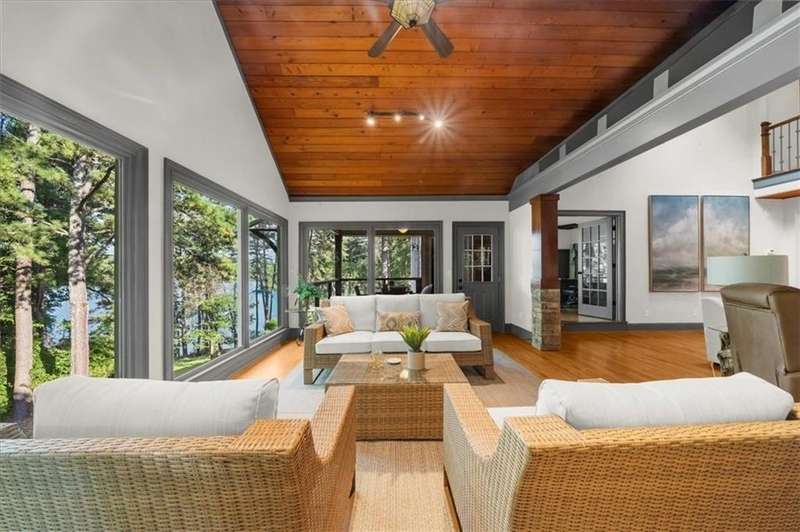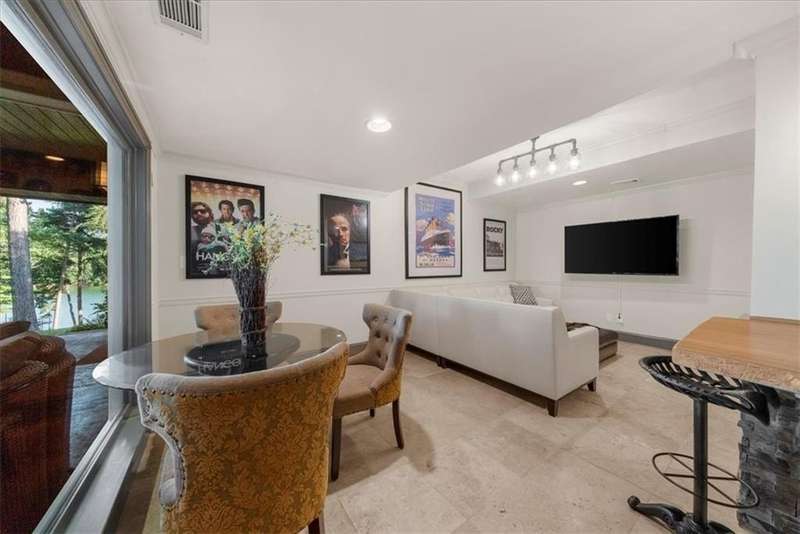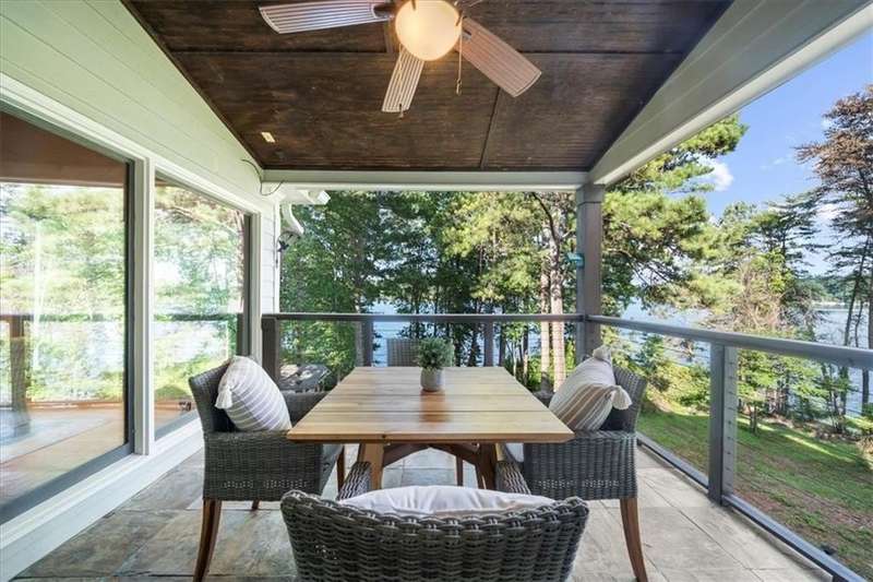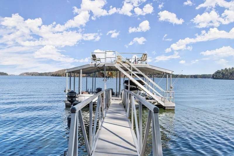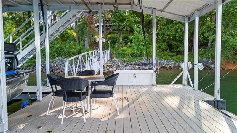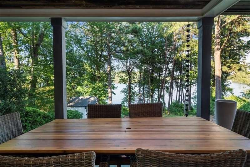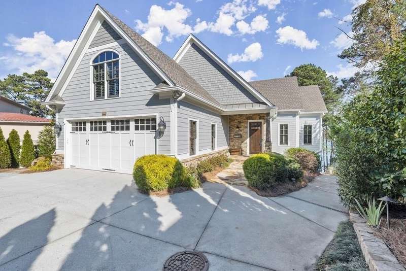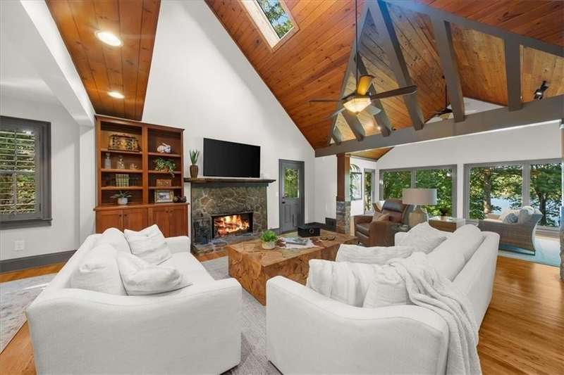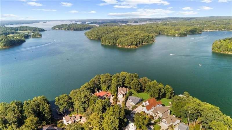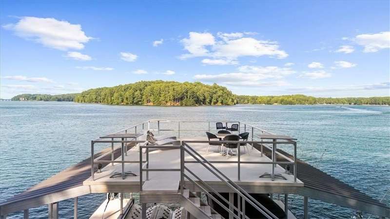 Welcome to a Rare Opportunity for Exceptional Lakefront Living on the South End of Lake Lanier with the ability to be sold turn-key furnished. This stunning craftsman lakefront estate, is behind secure gates on one of Lake Lanier's most coveted private point lots. Positioned on the sought-after south end of Lake Lanier, this exceptional property provides the perfect blend of tranquility and accessibility. Mere minutes from marinas, charming lakeside restaurants, and the convenience of the city of Buford, known for its boutique shopping and modern amenities. Independence Day becomes an unforgettable celebration as you watch the July 4th fireworks over Lake Lanier Islands, all from the comfort of your own private dock. This point lot's gentle slope offers rare, easy access to the lake. At the heart of your waterfront lifestyle is a (four-year-new), deep water Wahoo dock, 32' x 32', complete with a party deck for sun-soaked afternoons and starlit gatherings. A boat slip and slip for two jet ski hoists are ready for spontaneous fun, while enjoying the unobstructed 250-degree view across the deep-water channel. A craftsman home with three luxurious levels, this extraordinary residence has been designed for both grand entertaining and intimate family living. The three finished levels offer nearly endless flexibility and space. The main level sets the stage with an open concept plan that seamlessly connects the luxury kitchen, dining area, and great room. A chef's kitchen, well-appointed with top-tier stainless appliances, including a Wolf gas range and Subzero refrigerator. An expansive central island opens to the adjacent dining area and great room, where soaring two-story vaulted tongue-and-groove ceilings and a masonry stone fireplace. Walls of windows flood the space with natural light and frame breathtaking views of the water, ensuring that lake vistas are always a part of your daily experience. Retreat to the primary suite, designed for relaxation and rejuvenation. The accompanying spa-inspired bathroom features a steam shower. For those who work from home or crave a quiet space for reflection, the home office-complete with inspiring lake view. The sunroom and expansive covered porches invite you to begin each day with panoramic sunrise views, a steaming mug of coffee, and the peace that only lake living can provide. Upstairs, three generously sized bedrooms ensure that guests and family enjoy privacy, comfort and lake views. Among these is a second primary suite. The fully finished terrace level transforms the home from extraordinary to exceptional. Here, a second kitchen opens opportunities for multi-generational living or effortless entertaining. Gather with friends in the spacious living area, or indulge your passion for fine wines in the dedicated wine cellar. The terrace level opens directly onto a sprawling covered patio, where you can savor cool lake breezes and the gentle sounds of nature. A workshop provides space for hobbies or projects, while an additional outdoor shed is ready to store all your boating and lake toys. Each floor is equipped with its own laundry. The absence of an HOA ensures freedom and flexibility, while the home's Buford address brings the benefit of low Hall County taxes-a remarkable value for such a prestigious location. Recent updates include five newer HVAC units and plush new carpeting in all bedrooms as of 2022. The property also features extensive storage solutions, with a terrace level workshop and outdoor shed designed for all your equipment and lake essentials.