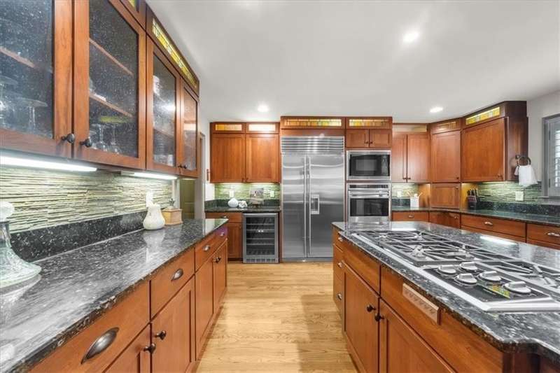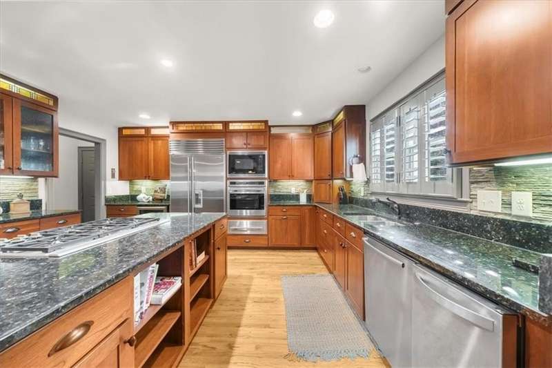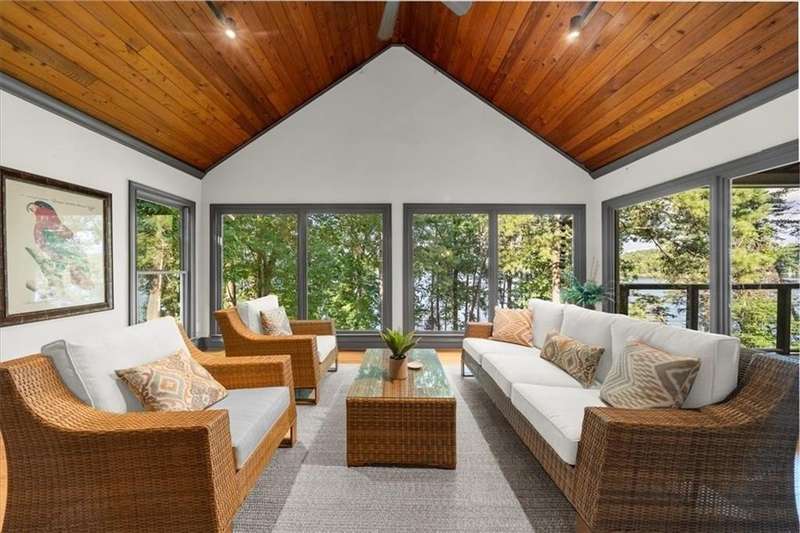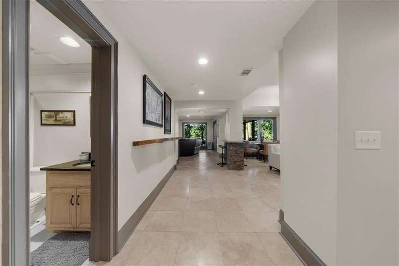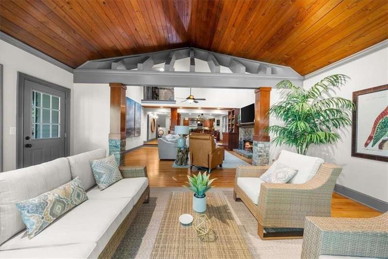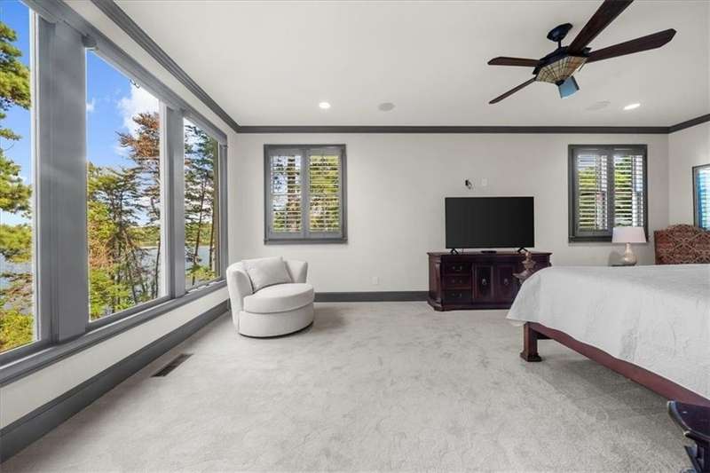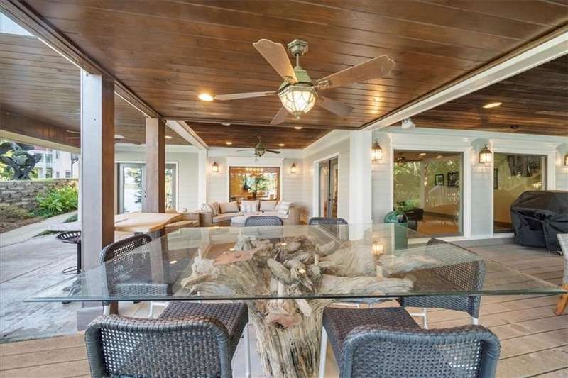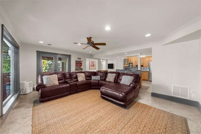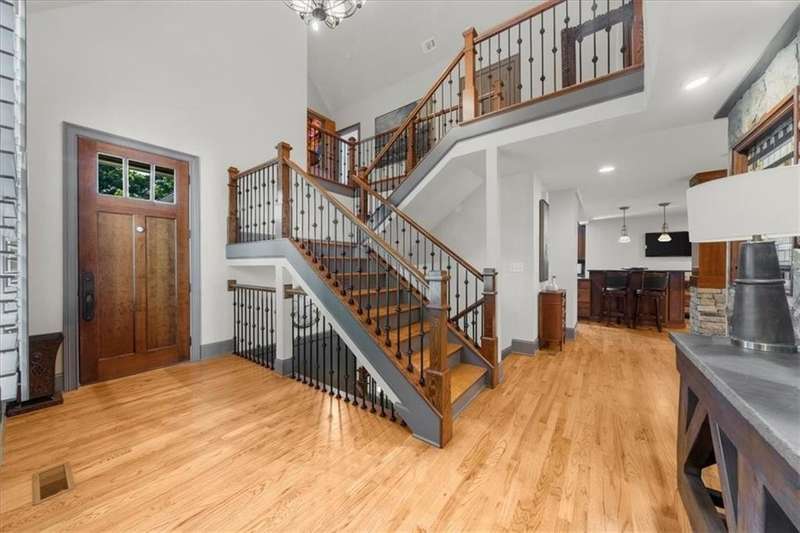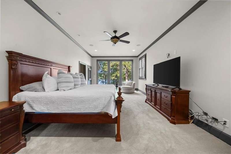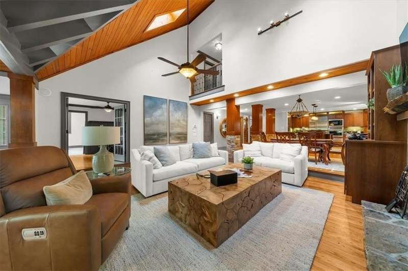 Welcome to a Rare Opportunity for Exceptional Lakefront Living on the South End of Lake Lanier with the ability to be sold turn-key furnished. This stunning craftsman lakefront estate, is behind secure gates on one of Lake Lanier's most coveted private point lots. Positioned on the sought-after south end of Lake Lanier, this exceptional property provides the perfect blend of tranquility and accessibility. Mere minutes from marinas, charming lakeside restaurants, and the convenience of the city of Buford, known for its boutique shopping and modern amenities. Independence Day becomes an unforgettable celebration as you watch the July 4th fireworks over Lake Lanier Islands, all from the comfort of your own private dock. This point lot's gentle slope offers rare, easy access to the lake. At the heart of your waterfront lifestyle is a (four-year-new), deep water Wahoo dock, 32' x 32', complete with a party deck for sun-soaked afternoons and starlit gatherings. A boat slip and slip for two jet ski hoists are ready for spontaneous fun, while enjoying the unobstructed 250-degree view across the deep-water channel. A craftsman home with three luxurious levels, this extraordinary residence has been designed for both grand entertaining and intimate family living. The three finished levels offer nearly endless flexibility and space. The main level sets the stage with an open concept plan that seamlessly connects the luxury kitchen, dining area, and great room. A chef's kitchen, well-appointed with top-tier stainless appliances, including a Wolf gas range and Subzero refrigerator. An expansive central island opens to the adjacent dining area and great room, where soaring two-story vaulted tongue-and-groove ceilings and a masonry stone fireplace. Walls of windows flood the space with natural light and frame breathtaking views of the water, ensuring that lake vistas are always a part of your daily experience. Retreat to the primary suite, designed for relaxation and rejuvenation. The accompanying spa-inspired bathroom features a steam shower. For those who work from home or crave a quiet space for reflection, the home office-complete with inspiring lake view. The sunroom and expansive covered porches invite you to begin each day with panoramic sunrise views, a steaming mug of coffee, and the peace that only lake living can provide. Upstairs, three generously sized bedrooms ensure that guests and family enjoy privacy, comfort and lake views. Among these is a second primary suite. The fully finished terrace level transforms the home from extraordinary to exceptional. Here, a second kitchen opens opportunities for multi-generational living or effortless entertaining. Gather with friends in the spacious living area, or indulge your passion for fine wines in the dedicated wine cellar. The terrace level opens directly onto a sprawling covered patio, where you can savor cool lake breezes and the gentle sounds of nature. A workshop provides space for hobbies or projects, while an additional outdoor shed is ready to store all your boating and lake toys. Each floor is equipped with its own laundry. The absence of an HOA ensures freedom and flexibility, while the home's Buford address brings the benefit of low Hall County taxes-a remarkable value for such a prestigious location. Recent updates include five newer HVAC units and plush new carpeting in all bedrooms as of 2022. The property also features extensive storage solutions, with a terrace level workshop and outdoor shed designed for all your equipment and lake essentials.