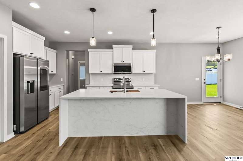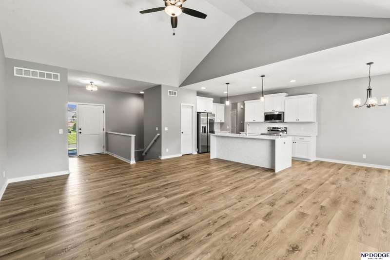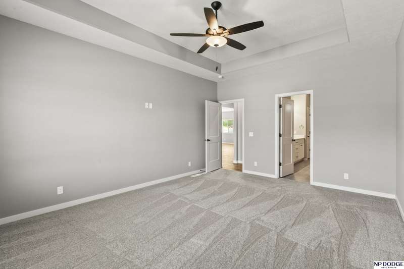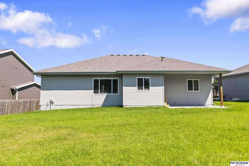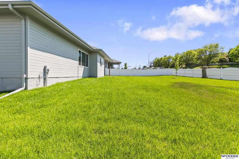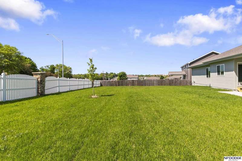 New construction ranch with 17411 square feet on the main with 3 car garage. Walk-in shower and full quartz waterfall island. Lots of upgrades. MINUTES to shopping, restaurants, schools, interstate and OFFUTT AFB.