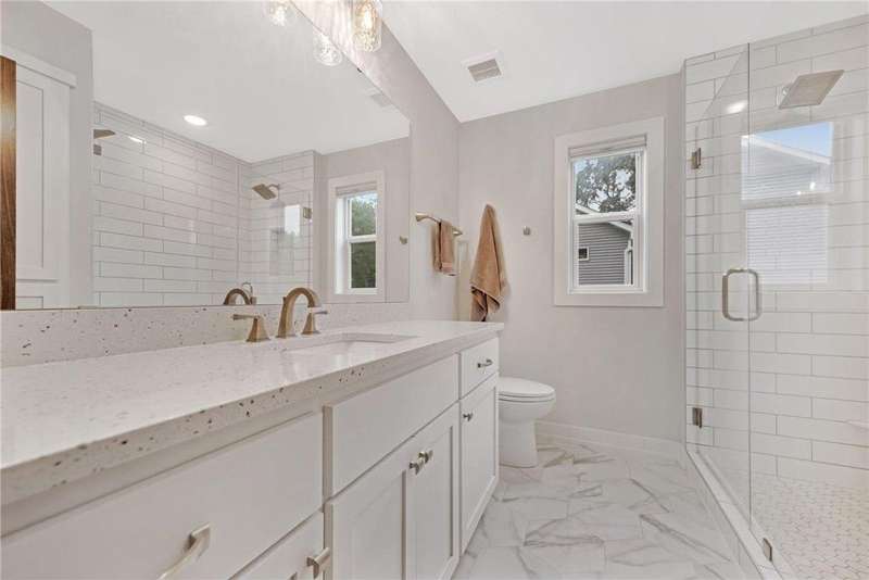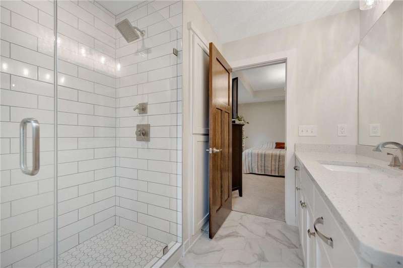 Built in 2022, this home offers all the modern updates you want—without the new construction price tag. Perfectly located in the heart of White Bear Lake, you’ll enjoy fantastic walkability to Tamarack Nature Center, Downtown White Bear Lake, and scenic trails around Birch Lake, with quick access to 35E. The fully fenced yard and walkout lower level back up to mature trees, creating a private, peaceful setting. Inside, the main level is designed for entertaining with a grand front entry, custom kitchen with seating around the center island, large dining area, and vaulted great room. Retreat to the private primary suite featuring a large walk-in closet and stunning bath. A second bedroom, full bath, and laundry room with safety pans for extra protection complete the main floor. Thoughtful details extend behind the walls too—all bathrooms and the kitchen were framed with composite materials (instead of wood) to prevent warping or waving from moisture. The lower level is equally impressive, with a large family room perfect for game nights or a quite evening with a book nestled up to a fire, two additional bedrooms, a third bath, space for an office or craft area, plus plenty of storage. With countless upgrades and special touches throughout, this home is one you need to see in person to fully appreciate.