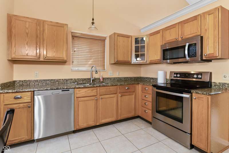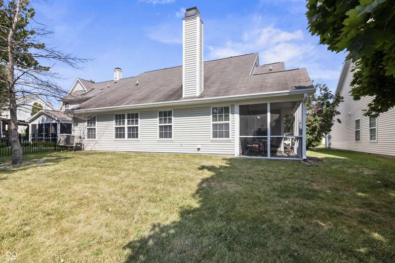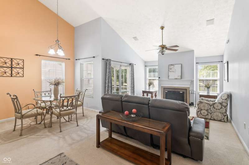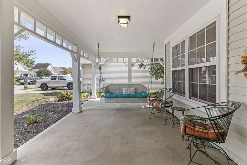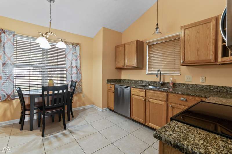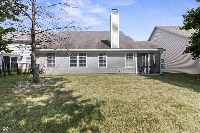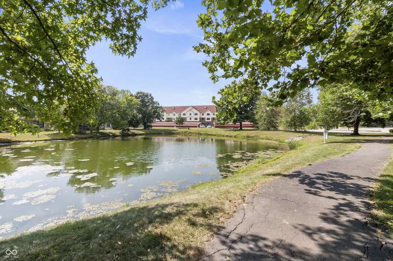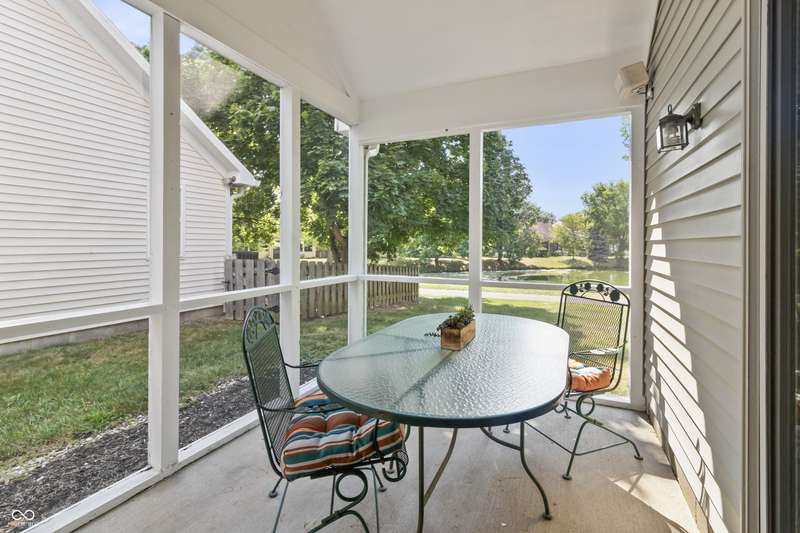 Welcome home to this charming ranch nestled in the popular neighborhood of Brookstone at Twin Creeks! Before entering the home, you will taken away by the large and welcoming covered front porch that is already equipped with a relaxing patio swing, making this the perfect spot for your morning coffee, afternoon beverage of choice, or simply catching up with friends/family. The inviting interior of the home features an open living room/dining room space with a wood-burning fireplace, vaulted ceilings, tons of natural light, and a sizable kitchen with granite countertops and a breakfast nook. With two bedrooms and two full bathrooms, there is plenty of space for your small family. The back screened-in patio adds another area for relaxation offering views of the back yard, community walking path, and the neighborhood pond. This very family-friendly neighborhood is located in the desirable Pike Township School District, across the street from Northwestway Park, very close to Eagle Creek Park, as well as several golf courses. Easy access to the interstate & downtown, with plenty of nearby shopping & entertainment. Schedule your showing today!