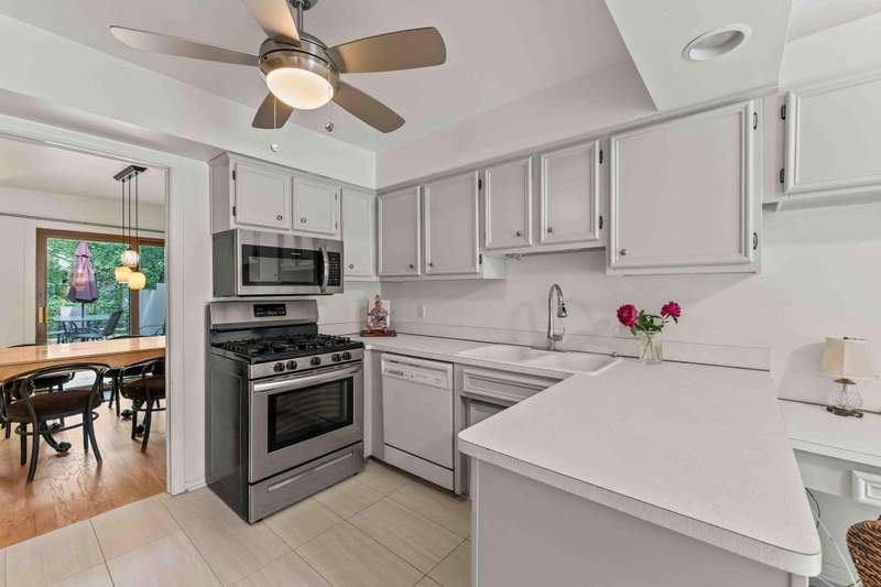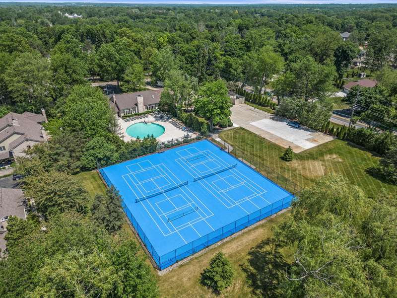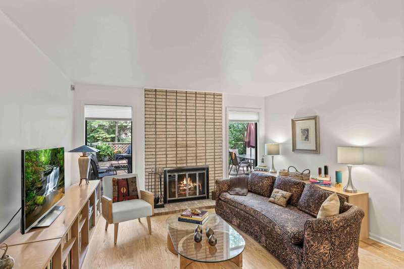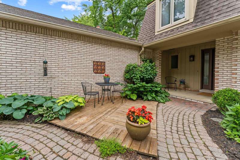 Prime front-of-the-woods location just steps from the clubhouse with pool, tennis, and pickleball courts! This three-bedroom townhouse in desirable Adams Woods offers Bloomfield Hills Schools and a gated courtyard entry with paver walkway and lush perennial gardens. Covered front porch opens to a light-filled, neutral interior featuring 2.5 baths and two natural fireplaces—one in the living room and one in the primary bedroom. The kitchen includes painted wood cabinets and ceramic tile floor, stainless steel appliances including gas range, refrigerator, microwave and dishwasher. The open-concept living and dining area showcases newly installed select oak hardwood floors. Enjoy western sunsets from the spacious deck. Major mechanical updates include a brand-new gas furnace and central air (April 2025). Bedrooms with ceiling fans. Association fee includes access to Adams Woods Clubhouse at 1480 Timberview with refreshing pool, tennis/pickleball courts, nature tr., building insurance, exterior building maintenance, water service in and out, snow removal to front door.