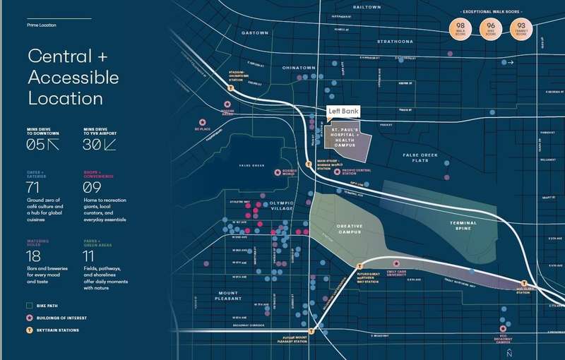 The Left Bank. This rarely offered 1 bedroom townhouse plan showcases an industrial look with a focus on polished & raw concrete, clean lines, & an abundance of natural light. Walk out your private entrance on the quiet side of the building, steps away from vibrant Chinatown & minutes from the heart of downtown and the seawall. Amazing restaurants, night life & transit are all around. The unit has dual entrances, an efficient layout with distinct dining & lounge spaces, a linear kitchen with angled peninsula, perfect for entertaining or working from home + large in-suite storage room for all of your gear. 1 parking included & 2 pets allowed. Watch the neighborhood grow & thrive as the new St.Paul's Hospital + adjacent, architecturally stunning Nexus office & retail complex near completion.