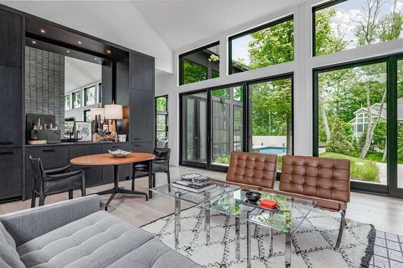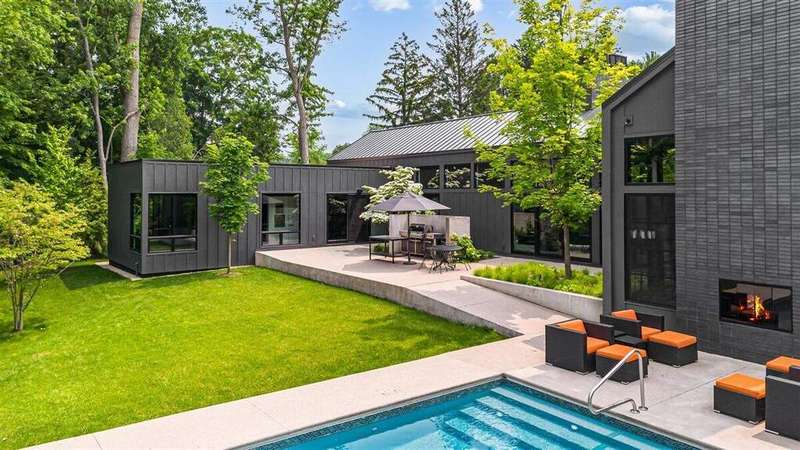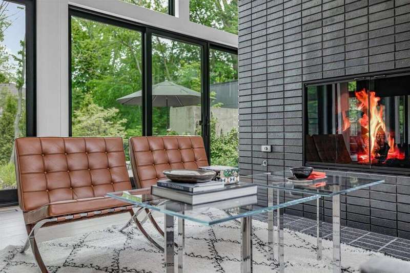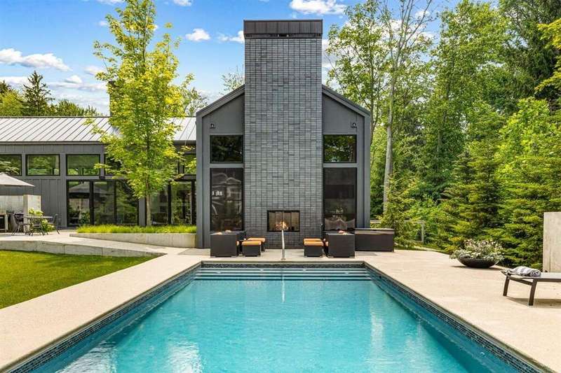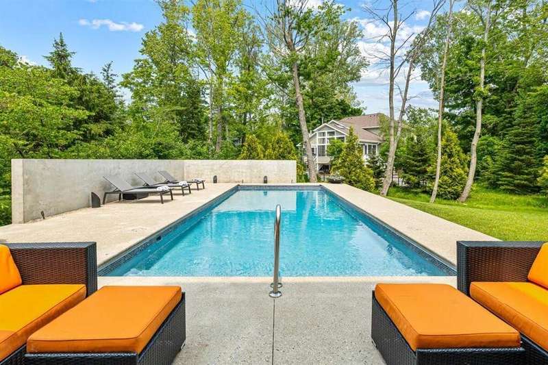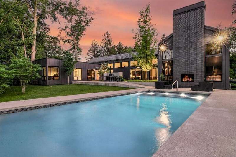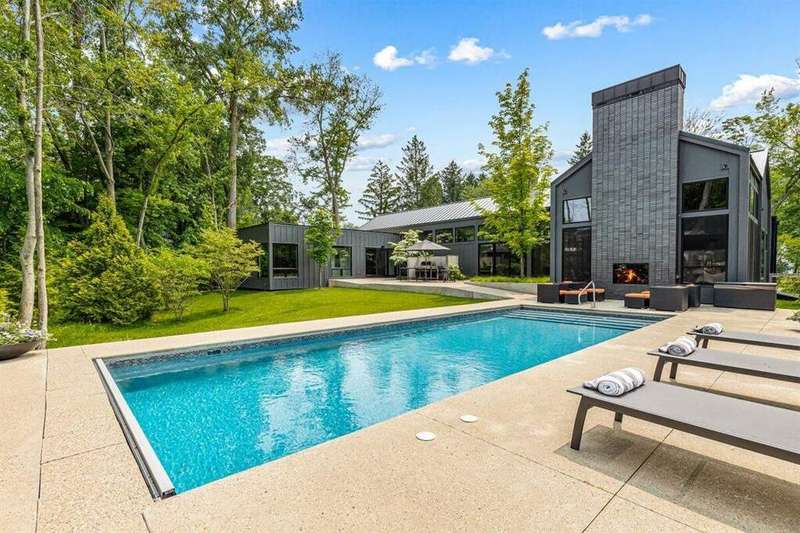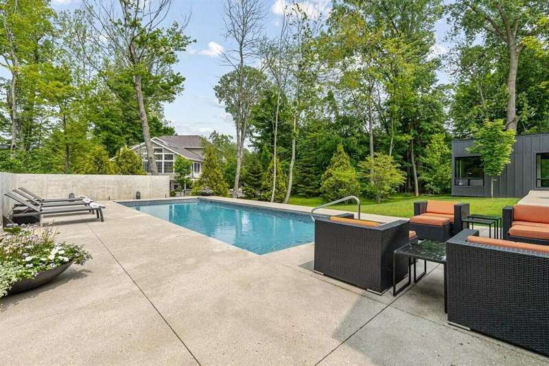 ARCHITECT DESIGNED LAKESIDE RETREAT STEPS FROM PIER ST BEACH! A rare offering-this architect's personal residence is a masterful blend of modern elegance, timeless craftsmanship, and thoughtful design. Just three years new and located steps from Pier Street Beach, this exceptional home is the result of a visionary collaboration between the best in the industry. With clean, classic lines, a striking brick facade and a 15' x 40' pool, the home was designed from the inside out to harness natural light and blur the boundaries between indoor and outdoor living. Wide white oak floors, soaring 18-foot vaulted ceilings, clerestory windows, and walls of glass create a luminous, welcoming interior that feels grand yet intimate. Ideal for both luxurious entertaining and quiet retreat, the main living space features a dramatic two-story brick fireplace, which elegantly divides the great room from a sophisticated bar/den complete with custom cabinetry, an ice maker, bar fridge, and wine fridge. The chef's kitchen is a true showpiece, outfitted with a full-size refrigerator and freezer, dual dishwashers, an expansive island, and a dedicated coffee bar sure to delight culinary enthusiasts. The dreamy three-season porch, anchored by another stunning two-sided brick fireplace, seamlessly opens to the pool, generous deck, and alfresco dining area creating a resort-style experience right at home. With three en suite bedrooms, two additional flex rooms for guests or home offices, a children's playroom, and a dedicated Peloton room, this home offers space and versatility for every lifestyle. Additional highlights include a spacious 2.5-car garage, geothermal heating and cooling, a whole-house generator, and a large auto court. Modern yet warm, sophisticated yet livable this is one of the area's most distinctive and exceptional offerings. Pristine in every single detail!