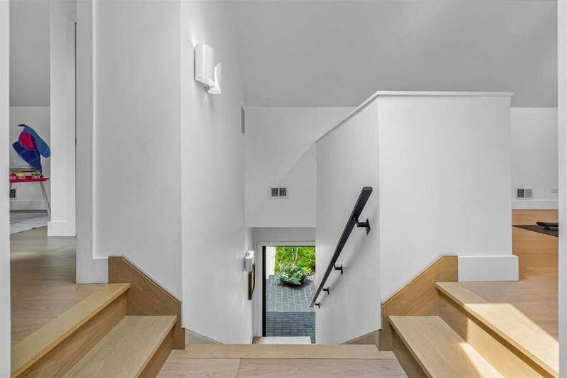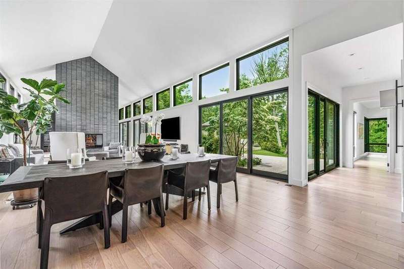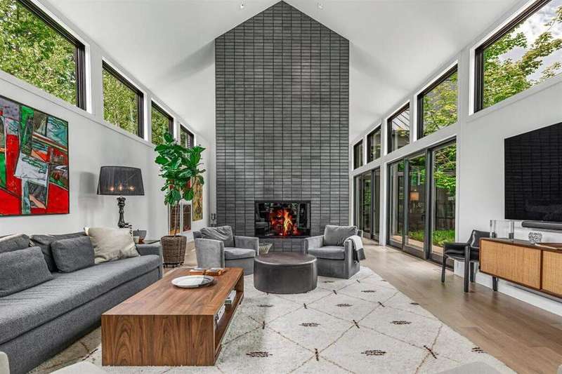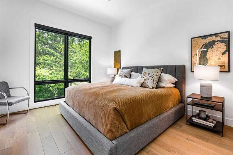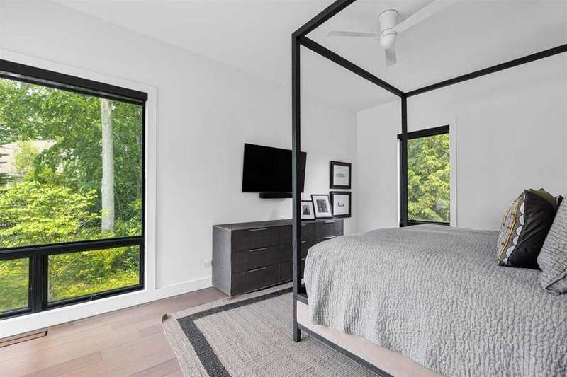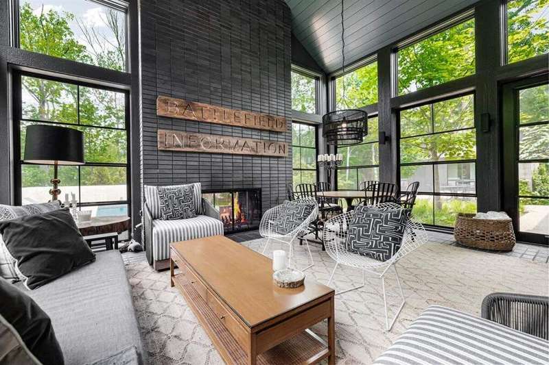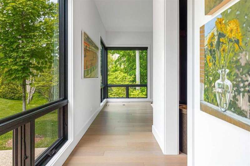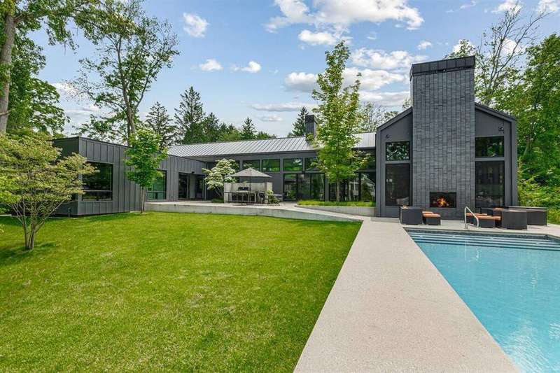 ARCHITECT DESIGNED LAKESIDE RETREAT STEPS FROM PIER ST BEACH! A rare offering-this architect's personal residence is a masterful blend of modern elegance, timeless craftsmanship, and thoughtful design. Just three years new and located steps from Pier Street Beach, this exceptional home is the result of a visionary collaboration between the best in the industry. With clean, classic lines, a striking brick facade and a 15' x 40' pool, the home was designed from the inside out to harness natural light and blur the boundaries between indoor and outdoor living. Wide white oak floors, soaring 18-foot vaulted ceilings, clerestory windows, and walls of glass create a luminous, welcoming interior that feels grand yet intimate. Ideal for both luxurious entertaining and quiet retreat, the main living space features a dramatic two-story brick fireplace, which elegantly divides the great room from a sophisticated bar/den complete with custom cabinetry, an ice maker, bar fridge, and wine fridge. The chef's kitchen is a true showpiece, outfitted with a full-size refrigerator and freezer, dual dishwashers, an expansive island, and a dedicated coffee bar sure to delight culinary enthusiasts. The dreamy three-season porch, anchored by another stunning two-sided brick fireplace, seamlessly opens to the pool, generous deck, and alfresco dining area creating a resort-style experience right at home. With three en suite bedrooms, two additional flex rooms for guests or home offices, a children's playroom, and a dedicated Peloton room, this home offers space and versatility for every lifestyle. Additional highlights include a spacious 2.5-car garage, geothermal heating and cooling, a whole-house generator, and a large auto court. Modern yet warm, sophisticated yet livable this is one of the area's most distinctive and exceptional offerings. Pristine in every single detail!