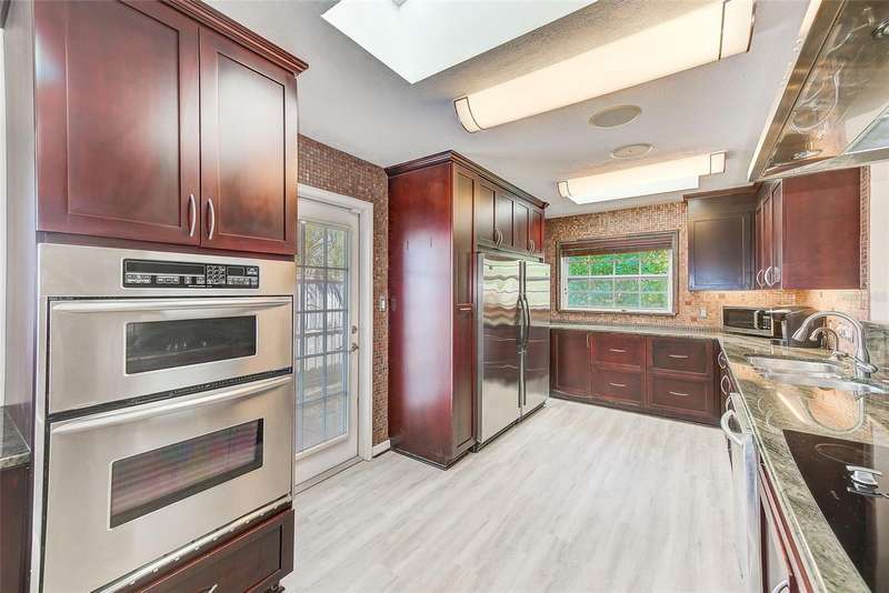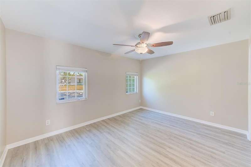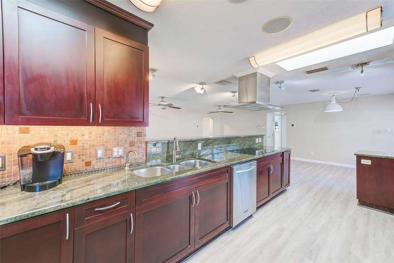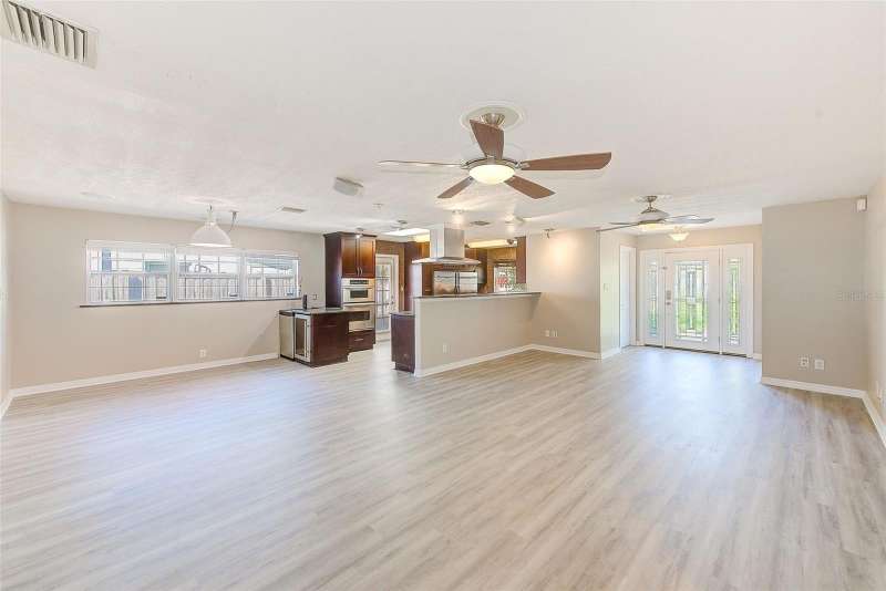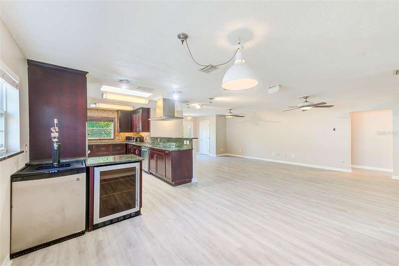 PRICE REDUCED PlLUS A BRAND NEW ROOF…THIS IS A GREAT DEAL!!! Classic Florida Ranch in Guernsey Estates – Updated & Move-In Ready! This beautifully maintained home offers a spacious open floorplan with modern updates, including brand-new luxury vinyl plank flooring and fresh paint throughout. The expansive kitchen is a chef’s dream, featuring rich wood cabinetry, granite countertops, top-of-the-line stainless steel appliances, abundant storage, a commercial-grade refrigerator and freezer, a wine fridge, and a built-in kegerator—perfect for entertaining. The media room is wired for 7.1 surround sound with a built-in wall mount and HDMI outlet for your entertainment setup, while built-in speakers extend to the family room, kitchen, and dining area. The home is fully wired with CAT-5 data lines for seamless connectivity. The primary suite is generously sized, featuring a walk-in closet and separation from the guest rooms for added privacy. Both bathrooms have been tastefully updated and re-piped in 2018, with deep, jetted soaking tubs for ultimate relaxation. Additional updates include a new HVAC system installed in 2019 for efficient climate control and a brand-new roof to be installed prior to closing, providing long-term peace of mind. With its new flooring, fresh paint, high-end kitchen features, updated mechanicals, and thoughtful upgrades, this home is truly move-in ready. Don’t miss your chance—schedule a showing today!