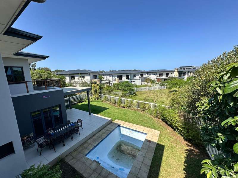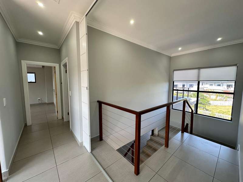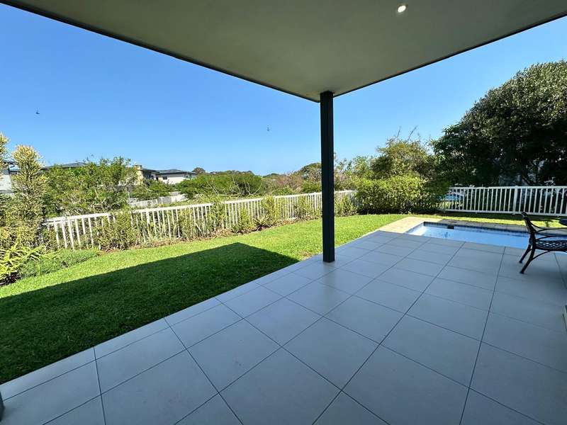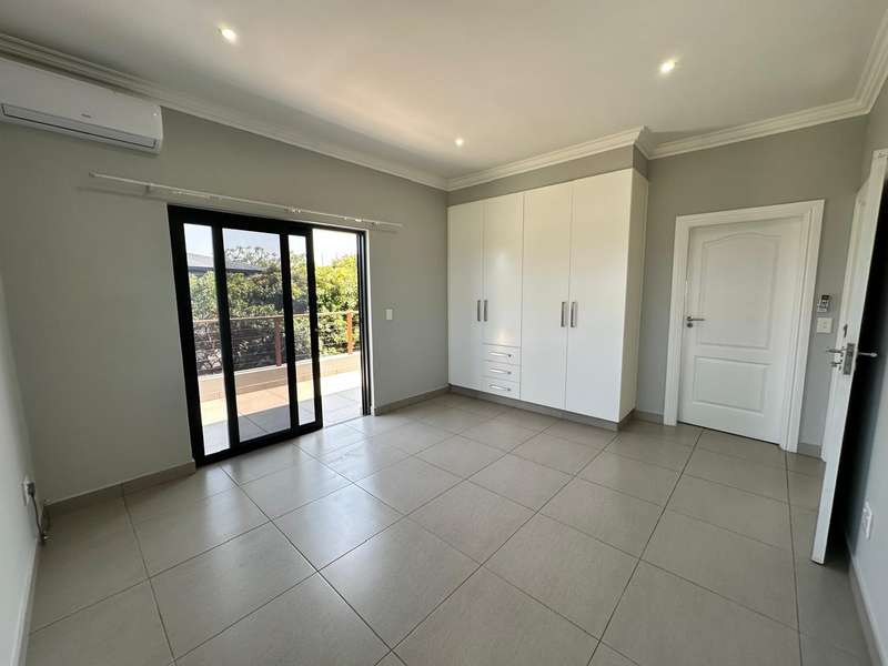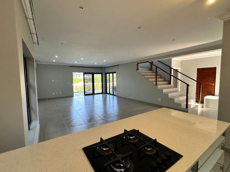This stunning 3-bedroom home, all en-suite, is situated in the sought-after Mount Richmore Estate. Designed with modern living in mind, the open-plan kitchen, featuring a gas stove top, flows seamlessly into the dining room and lounge area. Air conditioning throughout ensures year-round comfort, while a scullery adds convenience. The outdoor space is perfect for entertaining, with a built-in braai, covered patio, and swimming pool. Two bedrooms open onto private balconies, enhancing the home?ÇÖs charm. Additional features include a guest toilet and double garage. Ideally located, the home is within walking distance to Curro Private School and just 1km from New Salt Rock Shopping Center, offering both luxury and convenience.