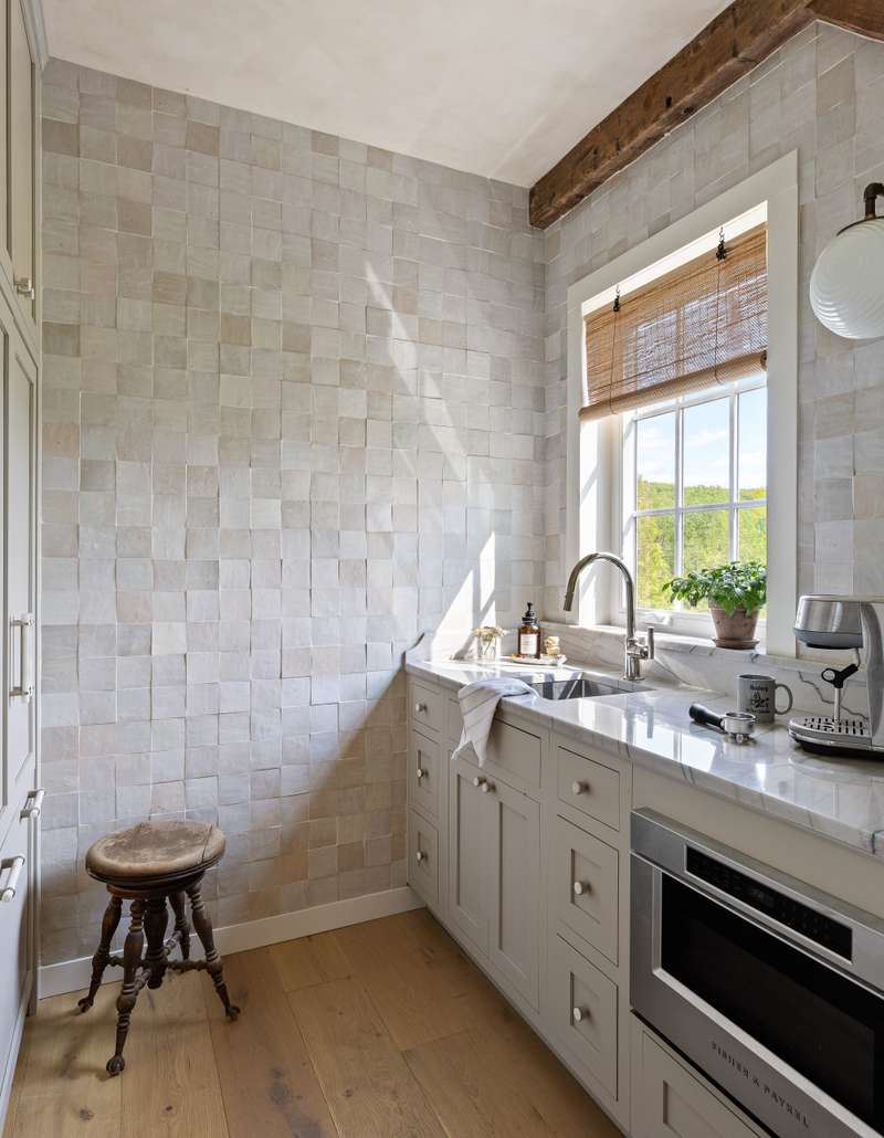 Welcome to Potter Mountain House, a masterfully reimagined Greek Revival church turned luxury designer estate. The original timber-framed structure was constructed in 1837 as the Manorkill Methodist Church, serving its community for over a century before being carefully dismantled and relocated to its current site in Gilboa, NY. Now sited on 37 acres with sweeping Catskill Mountain views, the building began its two-year transformation in 2023 by the boutique design/build firm ICDT Studio into a breathtaking 6,242-square-foot residencehonoring its historic soul while layering in a refined, design-forward sensibility. The result is a one-of-a-kind architectural offering that balances reverence for the past with an intentional, contemporary design ethos.Inside, every detail delivers. The three finished levels are anchored by a soaring Great Room featuring the restored original timber frame, hand-hewn beams, and a full wall of windows that frame the panoramic mountain views. A round, sculptural gas fireplace adds warmth and ambiance between the living and dining spaces, while the chefs kitchen features a 48 AGA induction range, Fisher & Paykel appliances, Waterworks fixtures, and a stunning stone-clad island. A walk-in pantry accented by reclaimed wood beams and lined with Zellige tile completes the space. The spacious, open layout provides a striking balance of style and function for both daily living and entertaining.Ascending a symmetrical dual staircase, the Great Room opens into a dramatic library loft housed within the homes original church cupola, crowned by an 18-foot long, multi-point glass chandelier and custom floor-to-ceiling bookcases. Just off the dining area, a glass-fronted, 625-bottle refrigerated wine room is enclosed by custom arched iron doors. The home offers five bedrooms and four-and-a-half exquisitely finished baths, each appointed with radiant heat, curated tilework, and an artful mix of stone and marble. The secluded primary suite occupies its own private wing and includes a spa-like bath with soaking tub, dual showers, Bardiglio marble, and double vanities framed by custom glass partitions. The walkout lower level features a secondary living room with wet bar, two guest quarters, built-in bunk room, and a spacious laundry suite with double washers and dryers. Lime-washed walls, wide-plank white oak flooring, and bespoke lighting carry a sense of quiet luxury throughout.Outside, multiple entertaining terraces and an expansive rear deck take full advantage of the natural surroundings, while a stream and seasonal waterfalls enhance the sense of tranquility. Additional features include an attached, heated, two-car garage, all-purpose mudroom, and a backyard master plan already prepared with plans for a future pool. Just 20 minutes from Windham Mountain Club, under an hour to Hudson and Albany, and a little over two hours from NYC, Potter Mountain House offers sanctuary, scale, and elevated design. A fully furnished option is also available, providing a true turnkey experience for effortless move-in. Unlike anything else on the marketdistinctive, historic, and telling a story entirely its own.