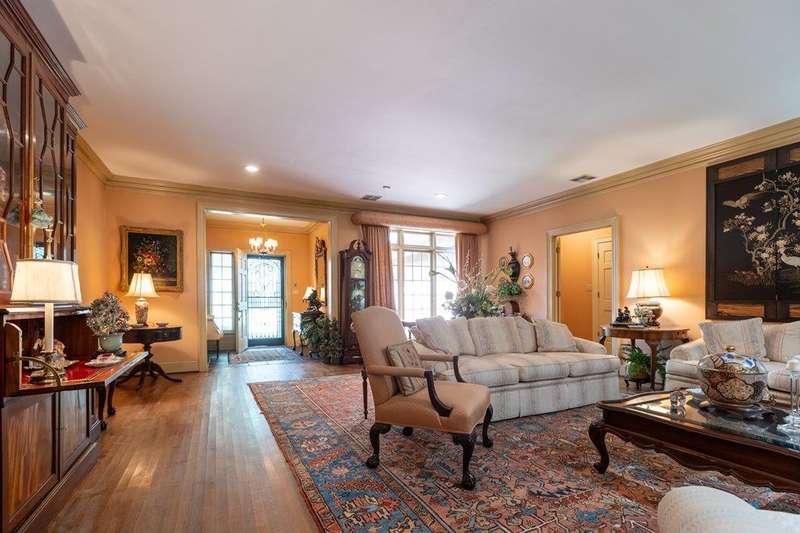 This exceptional residence offers refined living with generous spaces and timeless finishes. Step inside the Entry to the large open Living Room with a double Fireplace that opens to the Family Room as well. This area is perfect for expansive living or cozy intimate gathering. The stunning hardwood floors & extensive millwork add tons of character. The primary bedroom is a true retreat, complete with an unbelievable private dressing area for added luxury. The Kitchen is a chef's delight. Upstairs is a separate apartment with its own entry for privacy. Truly a home that blends classic elegance with a modern look.