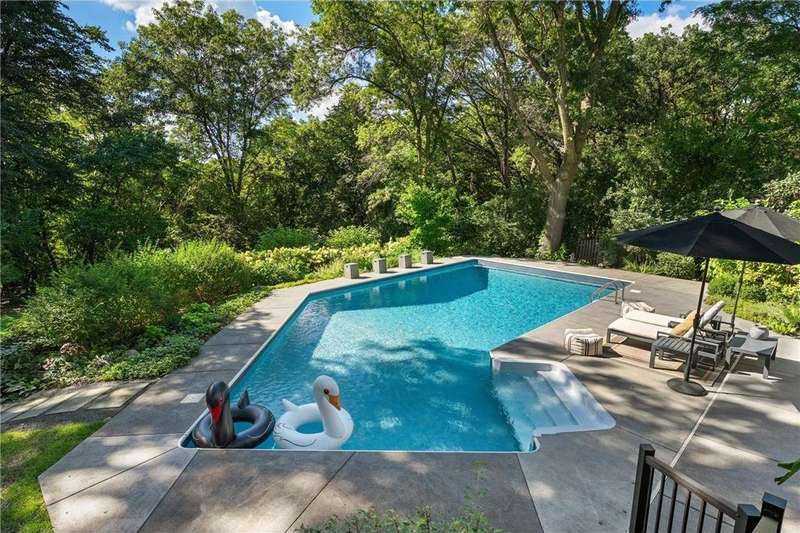 Highly desirable Purgatory Creek neighborhood offers this stunning updated Classic Colonial 2-story Walk-out Custom built by Lecy Bros. w/Designer finishes Nestled on a Nature Lovers .73 private lot. Updated pool, extensive landscaping w/a custom Water feature on the secluded Patio amidst all the Serenity. 5 Generously sized Bedrooms, 4 Bathrooms, 3 Car garage and 2 frplcs. Decompress in your Owner’s Suite w/ Spa soaking tub, Private Shower area and Walk-in closet. Bright Kitchen W/Top Line SS Appliances. Peninsula Island, ample cabinetry for storage and a Bonus walk-in Pantry and Separate Laundry room w/Tub and cabinets. 2021 Tuff Shed perfect for gardening, workshop, storage. New windows/doors throughout in 2017, Furnace 2017, Washer/Dryer (2016), Range, DW Microwave (2023), Garage door openers (2024), Designer Lighting and Painting, No money spared here,very Turn-Key. Convenient access to 169, Schools, Shopping, Parks, and Trails. Perfect blend of serenity and lifestyle. Pride in Ownership radiates here & you'll experience a lot of Emotion in this beautiful home! You'd be proud to call this Your Home!