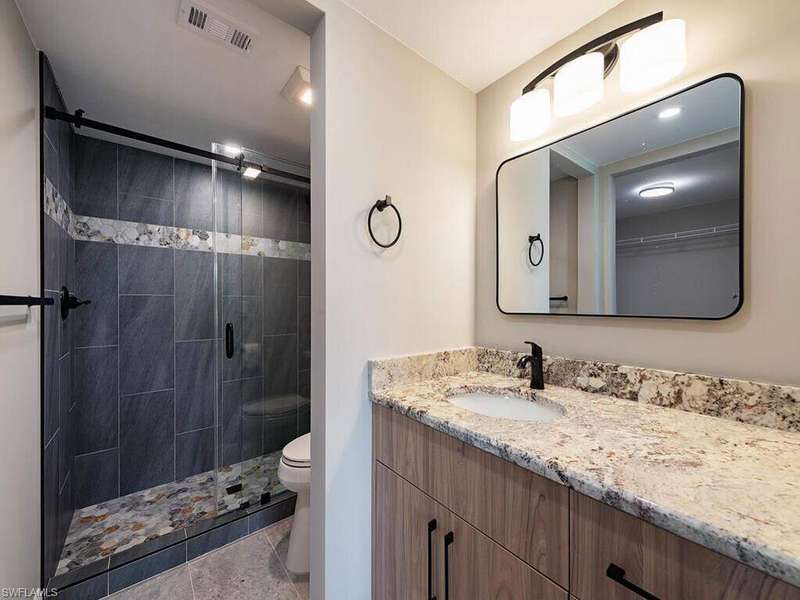 NEW, NEW , NEW. All new pictures of kitchen to come by 9/16/25 That is the only way to describe this outstanding first floor 3 bedroom condo. The entire kitchen is NEW. All of the soft close cabinets, the granite counter tops and tiled backsplash, along with the NEW stainless-steel appliances (which still have the packing paper inside). In the kitchen and great room you will find NEW ceramic tile, lights and molding. Step into the 2 guest bedrooms and find NEW ceramic tiled floors, fans and moldings. The guest bath includes NEW vanity, mirror, lights, toilet and remodeled shower with a classic NEW glass sliding type barn door. Walk into the master bedroom and again find NEW ceramic tile floors, fan, moldings and added cabinets to the walk-in closet, along with a NEW sliding barn door. The master bath features NEW, vanity, mirror, lights, toilet and retiled shower again with a NEW unique sliding glass barn door. Every electrical outlet and light switch is NEW. Also included is a brand NEW hot water heater and a NEW Air Conditioning system. NEW Washer and Dryer. NEW hurricane proof windows have just been added. All of this has been done with a NEW modern look and NEW a contemporary colored painting throughout. . About the only thing that isn't NEW is the view of the golf course, which you wouldn't want to change. Isn't it time for you to become the NEW owner??