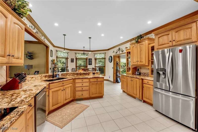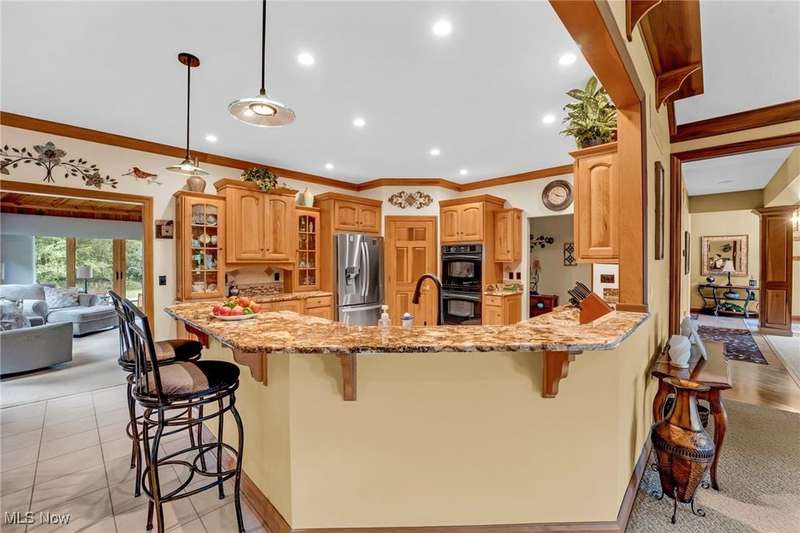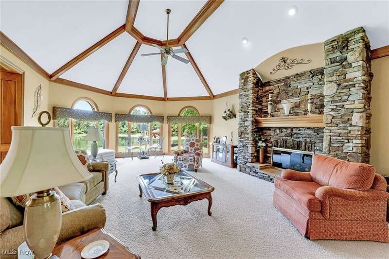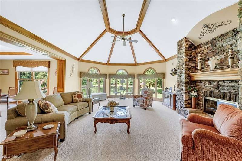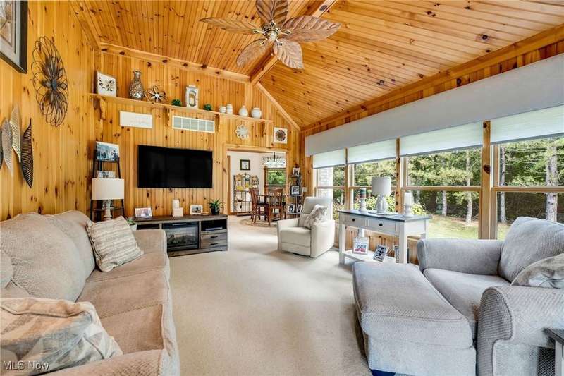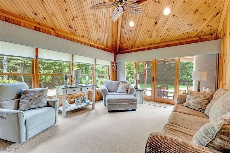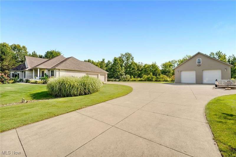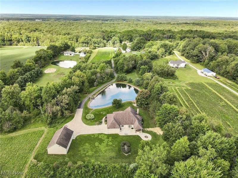 Welcome to this beautifully maintained 3 bedroom, 2.5 bath ranch offering over 4,000 sqft of total living space, nestled on a picturesque property complete with a private pond and lush tree-lined backdrop sitting 1,000 feet off the road. This home combines timeless charm with modern amenities, providing the perfect retreat for everyday living and entertaining. Step inside to find an inviting open floor plan with soaring ceilings, a gorgeous stone wood burning fireplace, and large windows that frame serene views of the outdoors. The spacious kitchen features custom hickory cabinetry, granite countertops, and a seamless flow into the dining and living areas. The sunroom with vaulted wood ceilings creates a warm, natural ambiance, while the finished basement offers an additional living area complete with a bar, recreation space, and a cozy home theater setup. The primary suite provides a private sanctuary with a spa-like bath, and two additional bedrooms are generously sized with ample closet space. The 3 car garage include a dog shower station and nature stone flooring. Outdoor living is a dream with a covered patio, fire pit, and sweeping views of the private 1/4 acre stocked pond with lighted waterfall, beach and gazebo; perfect for entertaining or simply relaxing. A 48'x30' pole barn with workshop space offers endless opportunities for hobbies, storage, or equipment. Also for sale is 5715 Vandermark, which is the front of this property, has a 2 Bedroom 884 sqft home that sits on 3.13 acres. Listed for $199,000.