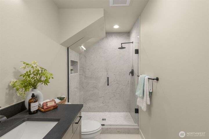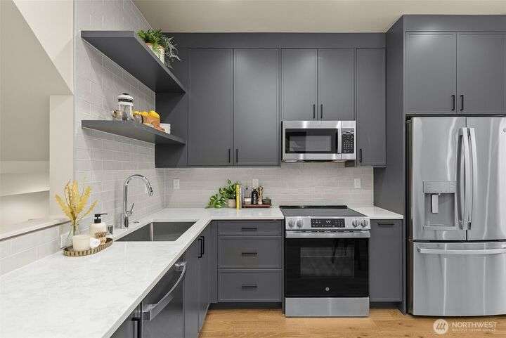 Welcome to your new life at Madrona & Spring! Nestled right next to the vibrant Madrona retail corridor, the Madrona & Spring collection offers the perfect blend of a serene residential neighborhood with all the conveniences of top-notch dining, shopping, and entertainment at your fingertips. Guest living on the entry floor opens into a L-shaped kitchen, seamlessly connected to window-lined living and dining space. Above that, the primary suite encompasses an entire level for maximum privacy, including a dual vanity bath and a pass-through walk-in closet. All this culminates in a roof deck with stunning water views (get ready for Sea Fair!). Dont forget about off-street parking with alley-access and a 90 walkscore! What more do you need?