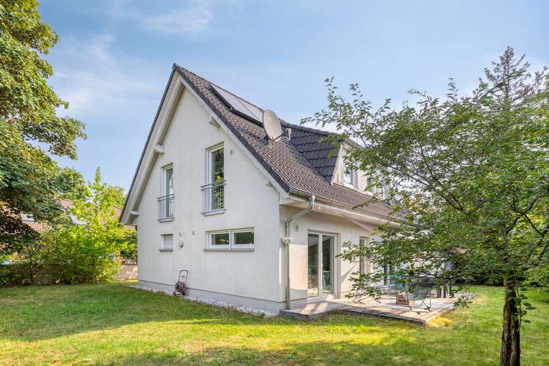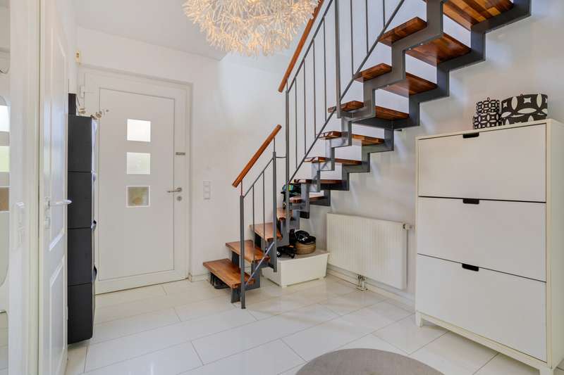 This well-kept detached house from 2009 stands on a generously proportioned plot of around 529 m² and offers plenty of space for individual living with around 137 m² of living space. The property impresses with its contemporary architecture, solid state of construction and well thought-out room layout, which offers ideal conditions for both families and couples. As you enter the house, you are greeted by an inviting entrance area that offers plenty of space for your wardrobe. This is followed by the spacious living and dining area. Large window fronts create a pleasant lighting atmosphere and provide a beautiful view of the terrace and adjoining garden. The adjoining kitchen offers enough space to realize your furnishing ideas and is directly connected to the living room, which promotes open communication and sociability. There is also a modern bathroom with natural light and a shower on the first floor. The staircase leads to the upper floor, which boasts three comfortable bedrooms. Here, every member of the family will find plenty of privacy and space for personal development. A further bathroom, also with natural light, offers a bathtub and contemporary sanitary facilities. A large utility room makes it easy to store the washing machine, tumble dryer and other household items. A storage room on the first floor and a storage area in the attic provide additional storage space. The garden and terrace invite individual use - whether as a play area, for gardening or for cozy hours outdoors. The property includes a garage and parking space in front of it for your vehicles, which are conveniently located on the property. Links to the public transport network and everyday amenities such as shops, schools and doctors are just a few minutes away. In summary, this property offers a successful combination of a practical room layout, good furnishings and well-maintained condition. The house is ideal for prospective buyers who value a contemporary home with ample space and a pleasant living environment. Let us convince you of the advantages of this property during a personal viewing - we look forward to presenting the house to you. Take a look at our Instagram page "vonpoll_duesseldorf". There you will find more exciting real estate offers and are always up to date.
