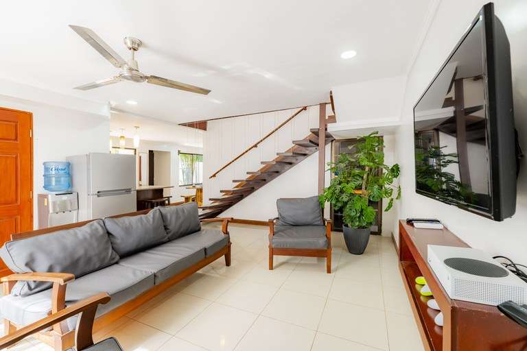 In under 10 minutes, you can reach top-rated private schools, gas stations, supermarkets, clinics, appliance stores, restaurants, and hardware stores, ensuring all your needs are within easy reach. This home comfortably sleeps six people and includes 2 TV areas, a master bedroom with a balcony, and an outdoor sitting area. It's a fantastic opportunity to own a brand-new property in a desirable location, whether as a permanent residence or a smart investment for long-term or short-term rentals.