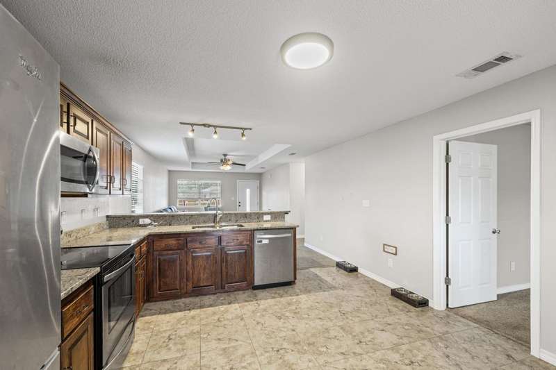 Welcome to this desirable 3 bedroom, 2 bathroom ranch home located on a corner lot in beautiful Navarre with NO HOA! This property is a Short Sale and is ready to sell according to the Owner's lender. When you arrive to this corner lot location - which is close to the Navarre Beach Causeway, you will notice that the fenced back yard faces south so you will have sun in the back yard year round - unless it is rainy, cloudy or overcast of course :). Your dogs will love this! Inside - the kitchen is in the heart of the home and features a large eat-in or dining area, tile floors, granite countertops, ample dark wood cabinet space, pantry and stainless appliances - fridge, built-in microwave, dishwasher, and smooth top range. Enjoy the convenient flow and accessibility of a classic ranch f loor plan, offering an open-concept main living area. The main suite features a large walk-in closet, high ceiling with ceiling fan and the bath has double vanity and easy to clean tub/shower combo. The corner lot not only enhances the home's curb appeal but also provides extra yard spaceperfect for gardening, a play area, or future upgrades like a pool. Located just a short drive from the sugar-white sands of Navarre Beach and the Navarre Beach Pier. Enjoy easy access to excellent Santa Rosa County schools, shopping, local dining and Convenient Commute with quick access to major roads for an easy drive to Eglin AFB, Hurlburt Field, Pensacola, and Destin. This move in ready all electric home is a fantastic opportunity to secure a charming home on a great lot in one of Florida's most relaxing coastal communities!