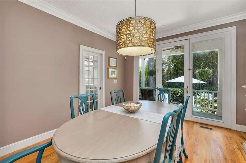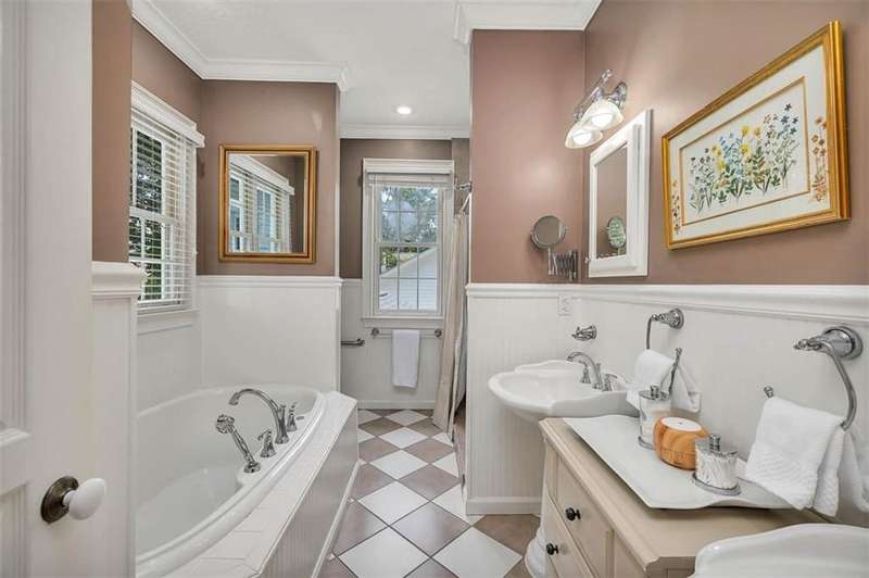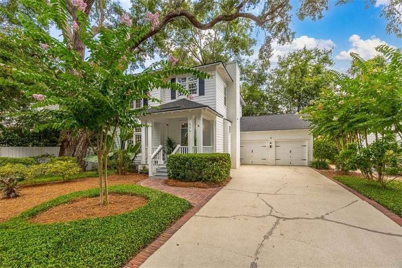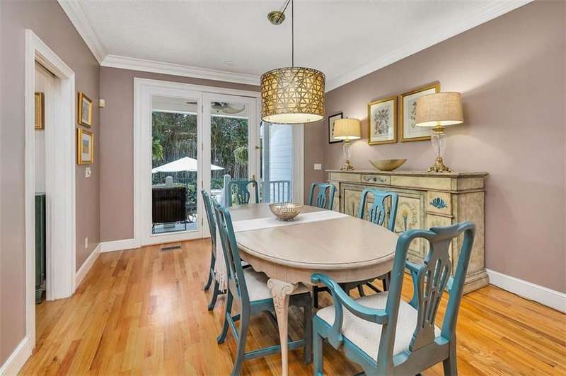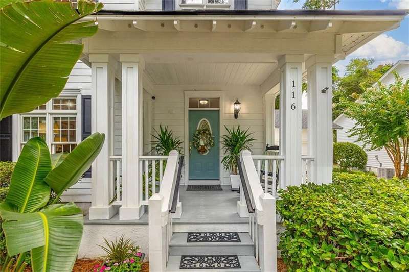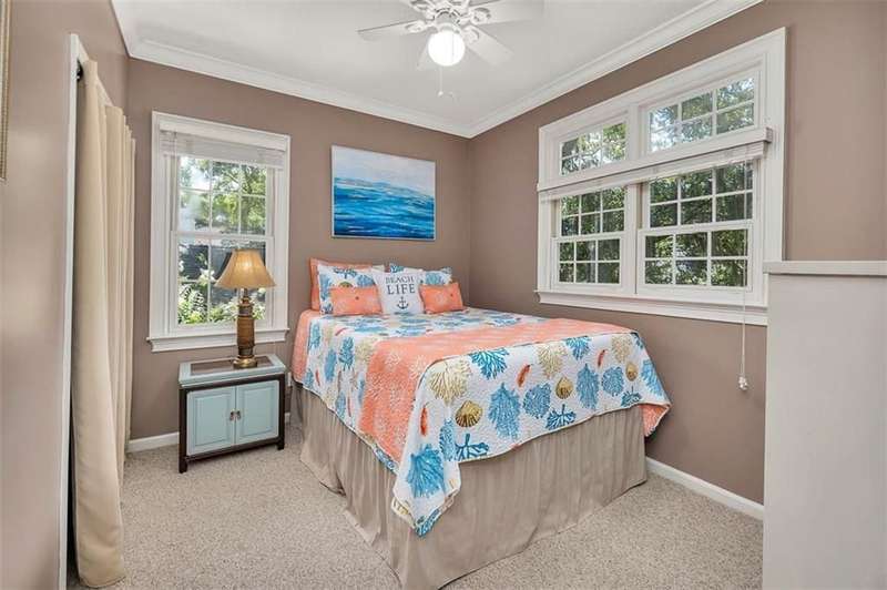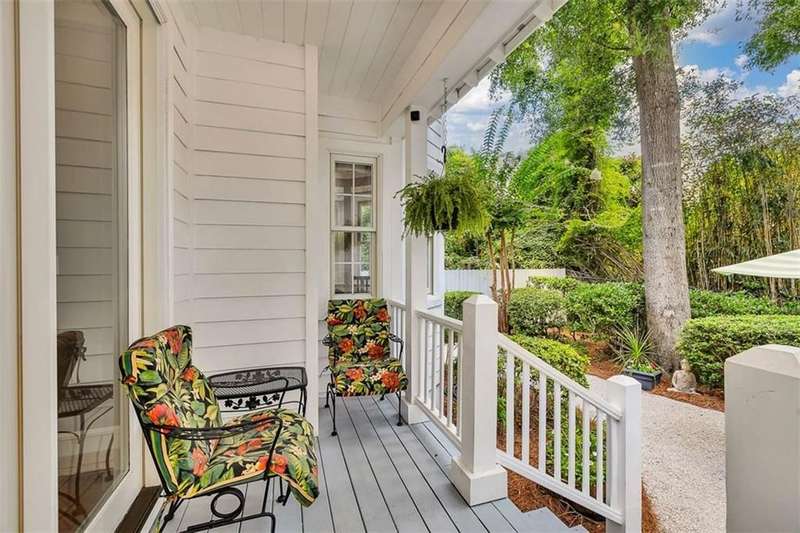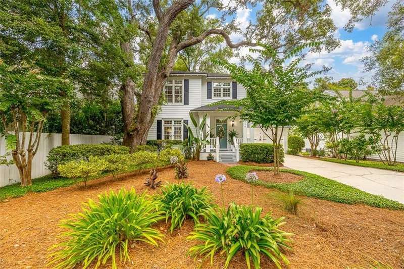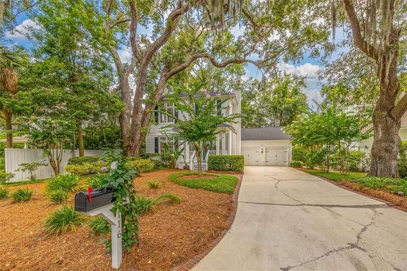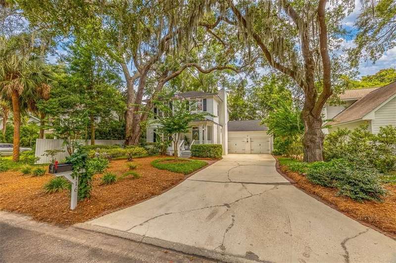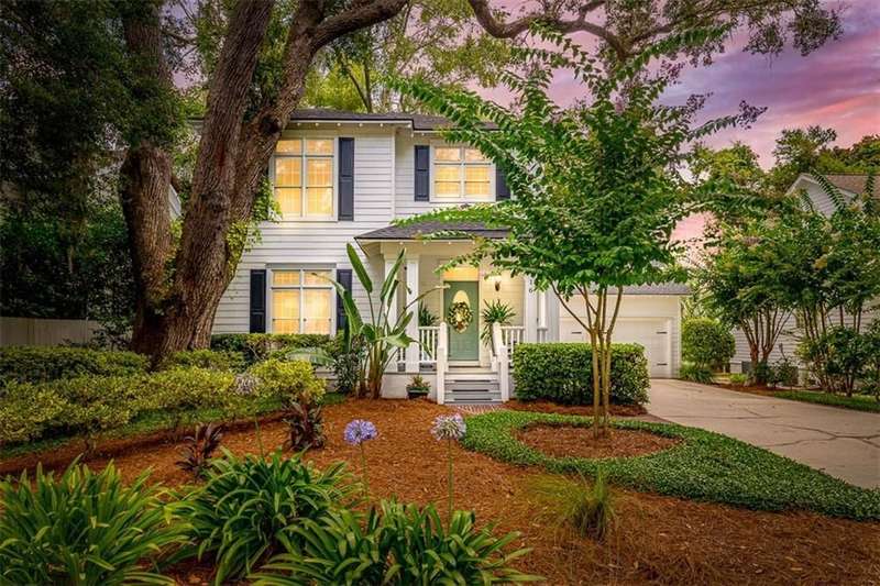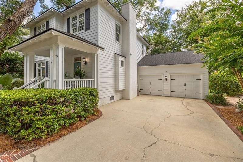 NEW ROOF! Welcome to 116 Rosemont-a Southern coastal cottage full of charm, updates, and character, nestled under the canopy of live oaks in the beloved Harrison Pointe neighborhood on St. Simons Island. Located on a quiet tree lined street, this move-in-ready home offers curb appeal, privacy, and easy access to the beach, shopping, dining, and off-island routes. The white exterior with black shutters and inviting rocking-chair front porch set the tone for the warm, classic style inside. Hardwood floors, detailed millwork, and natural light flow through every space. The living room features a wood-burning fireplace flanked by custom built-ins, and double French doors open to a flexible home office or den. The kitchen combines function and charm with beadboard cabinetry, butcher block countertops, stainless appliances, natural gas range, and a hidden appliance garage. A sunny bay window breakfast nook overlooks the lush backyard, where winding landscaped trails create a private courtyard feel. A pocket French door connects the kitchen to the dining room, which opens to the covered back porch with ceiling fan, leading to the detached 2-car garage. Upstairs, the primary suite offers two closets, a tray ceiling, and a cozy sitting area surrounded by windows. The ensuite features a soaking tub, walk-in tiled shower, and dual pedestal sinks. Two additional bedrooms, laundry and a full guest bath complete the second floor. Key Features & Updates:3 bedrooms - 2.5 baths; Flood Zone X - no lender-required flood insurance; Roof replaced in 2023 One HVAC replaced in 2023 + 2 smart thermostats; Water heater replaced in 2023; Detached 2-car garage with breezeway to covered back porch; Low HOA dues - just $350/year; Natural, low-maintenance landscaping with courtyard-style backyard * Quiet location in desirable, tree-lined community * Only 7 minutes by bike to the beach, and just 5 minutes to shopping, restaurants, and the movie theater. * Quick access off the island-just 10-12 minutes to the causeway-makes this a rare find for both privacy and practicality.