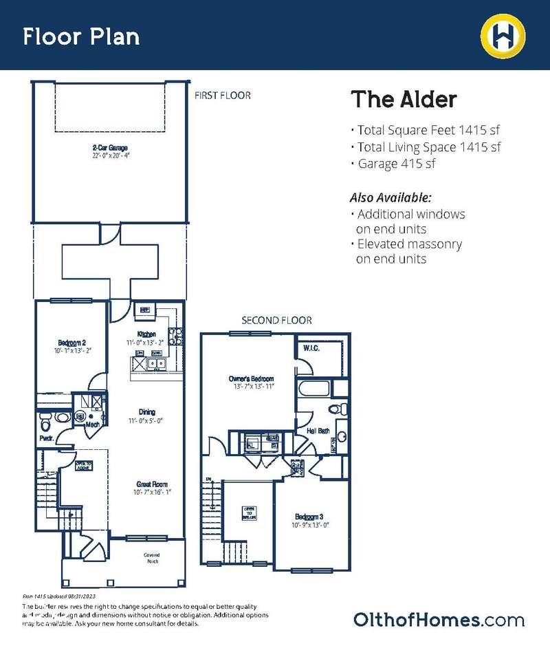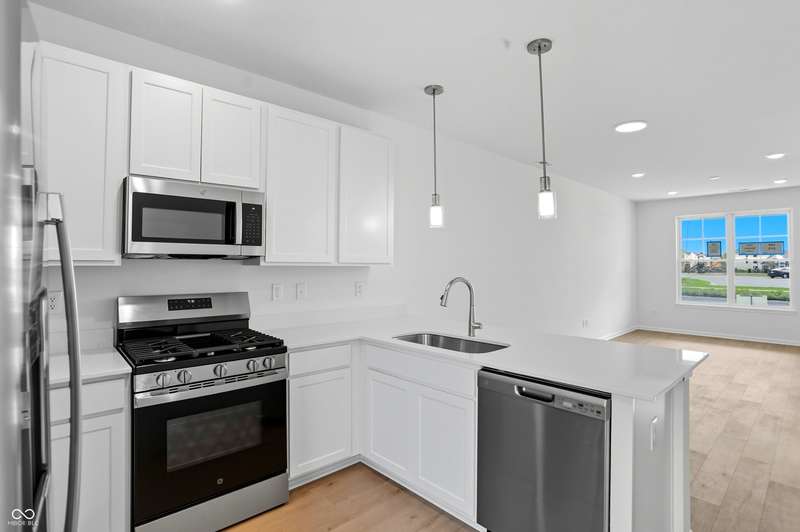 Welcome to The Adler by Olthof Homes. This thoughtfully designed low-maintenance townhome offers 1,415 square feet of modern living across two spacious levels. This open-concept floor plan features 9-foot ceilings on the first floor, creating an airy, inviting atmosphere perfect for everyday living and entertaining. Enjoy the convenience of a first-floor bedroom and full bath, ideal for guests, a home office, or multigenerational living. The designer kitchen boasts quartz countertops, stainless steel appliances, and plenty of space to cook and gather. Upstairs, you'll find two additional bedrooms and a second full bath, providing flexible space for family or hobbies. Step outside to your private, fenced-in courtyard, perfect for relaxing or enjoying your morning coffee.