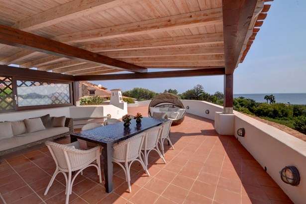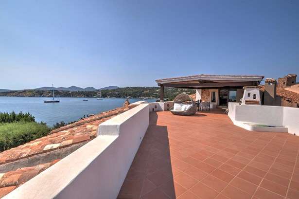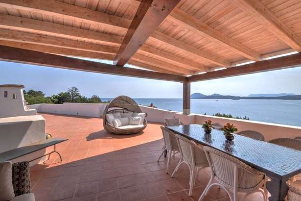 Magnificent apartment in the first row to the sea located in the charming village of Punta Volpe, in Porto Rotondo. The house is completely renovated and is spread over two levels: at the entrance level we find a balcony that also serves as an entrance and from which you access the living room, from here you reach a single bedroom and a double bedroom, connected by a shared bathroom, a small laundry room and a master bedroom with ensuite bathroom and access to a balcony overlooking the sea; on the upper floor we find an eat-in kitchen connected to a huge terrace with spectacular sea view, partly covered by a large veranda, with an outdoor dining room, and partly uncovered, with a sundeck, from here you can enjoy a view that ranges from Punta Lada, up to Capo Figari, passing through the Gulf of Marinella.The house has been totally renovated using quality materials, such as Wengè wooden and resin floors and marble and teak bathrooms.The village of Punta Volpe is one of the most exclusive in Porto Rotondo, with direct access to the sea, on which there are exclusive platforms, it also enjoys various services such as swimming pool, tennis courts and children’s playground, it is also located walking distance from the beaches of Sassi and from the one of the same name.The house has two car parks and one cellar.