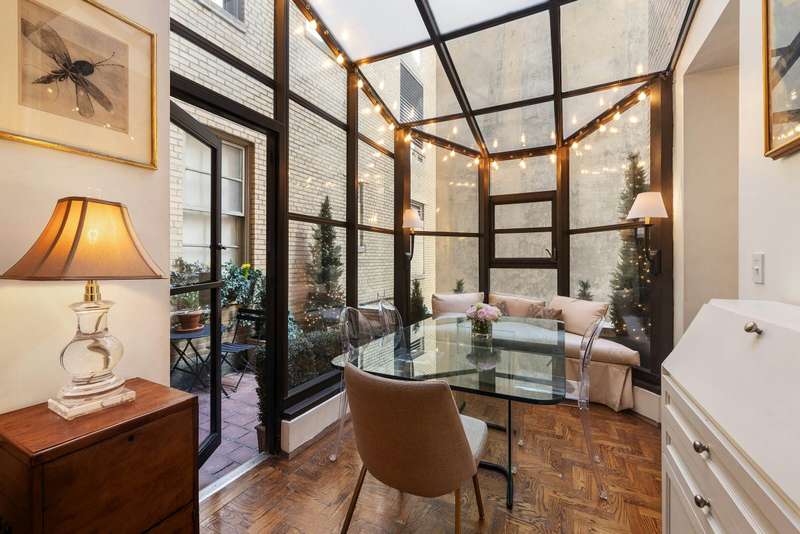 A rare and sophisticated retreat, this one-of-a-kind maisonette at the prestigious 1016 Fifth Avenue seamlessly blends charm, privacy, and modern convenience. With a private entrance off the elegant lobby, this home offers ultimate city living within a white-glove cooperative, perfect as a pied- -terre. Featuring an in-unit washer/dryer, one and a half baths, and a breathtaking glass-enclosed greenhouse dining area with floor-to-ceiling and overhead glass walls, this residence is a true sanctuary in the heart of the Upper East Side.