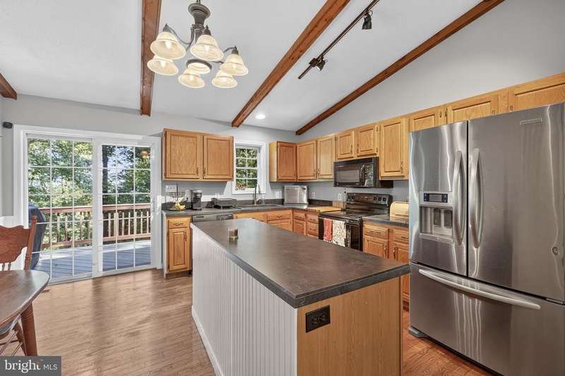 This home is located in the lovely High Knob Community. Offering easy and quick access to Front Royal and I66. You will enjoy seasonal mountain vistas from the private back deck. Cathedral ceiling in Living Room and Kitchen are enhanced by wooden beams giving it an airy and expansive feel. Functional Split bedroom floor plan layout on main level. The primary suite has a generous walk in closet and full bath. Great open back yard area which adjoins trees. Recent updates include a complete renovation to the basement! Bright open spaces with built in bookshelves, lightening with dimmers and beautiful LVP flooring. HVAC 2022. Distribution box replaced in 2021 along with pumping. New Oversized gutters with guards. Fresh exterior painting on house and foundation. This is home is designed for creating your true sanctuary for everyday living and entertaining.