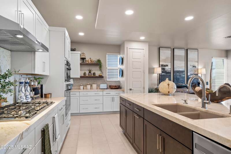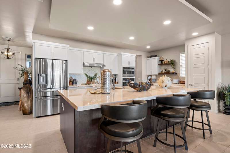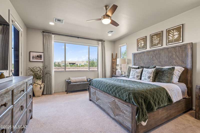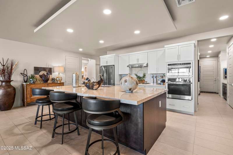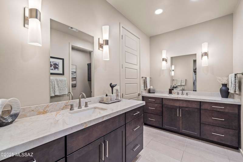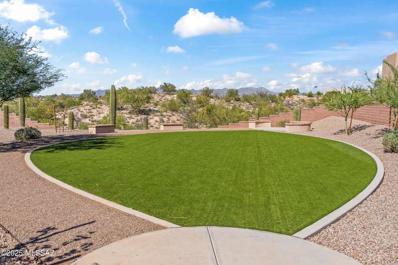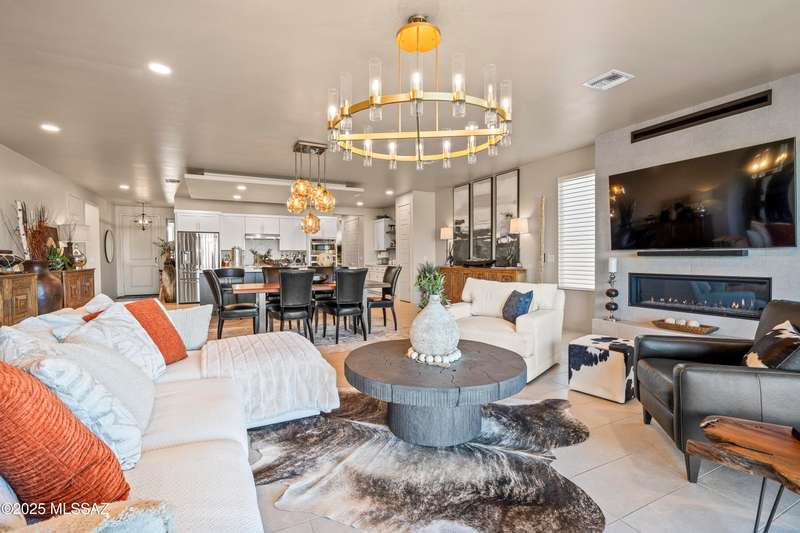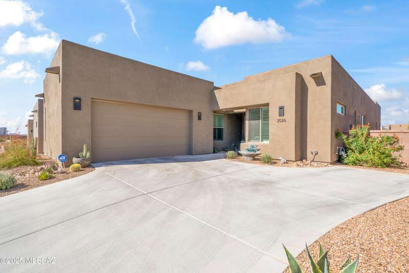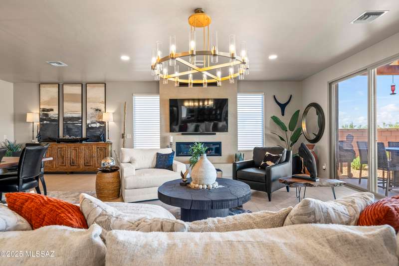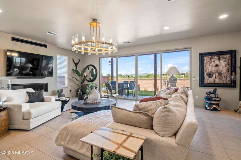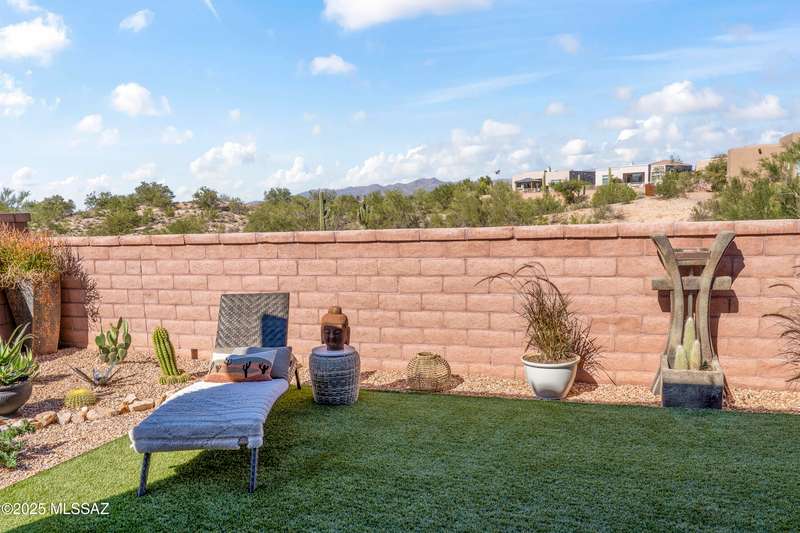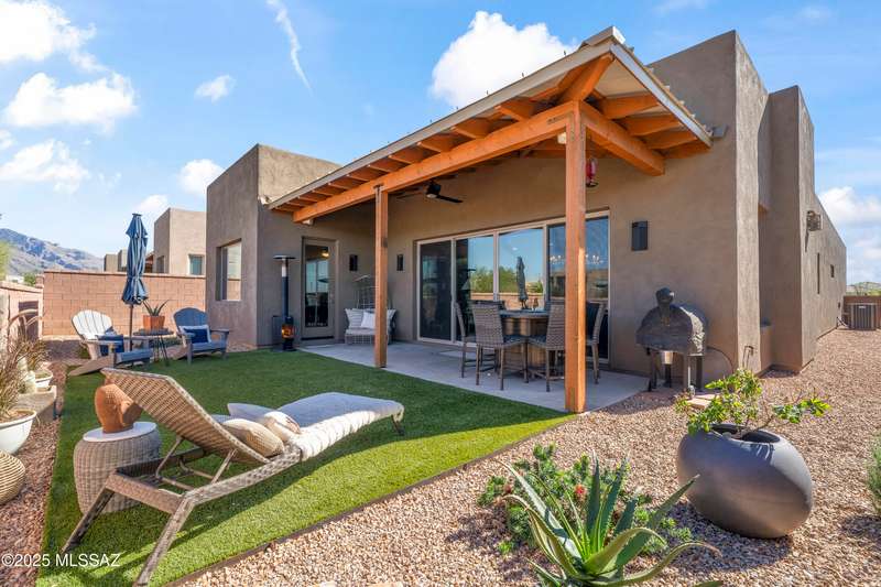 Enjoy modern desert living in this striking contemporary home, nestled in a gated commty of luxury hms designed by acclaimed architect Ron Robinette. The open grtrm features a dramatic floating drop ceiling, sleek tile FP, gorgeous chandeliers & designer flooring thruout. The gourmet kitchen impresses w/lg island, granite counters, SS appl & abundant cabinetry. Spacious primary suite incl a walk-in closet, dual vanities, and a beautifully tiled walk-in shower. Custom shades thruout incl plantation shutters in the addl bdrms. Beautifully curated landscaping w/a water fountain in front and back. Additional highlights incl 6-panel doors, elegant lighting & a block-walled bkyd w/turf, exposed wood beam covered patio w/new speakers installed and lovely mountain views to relax and enjoy.