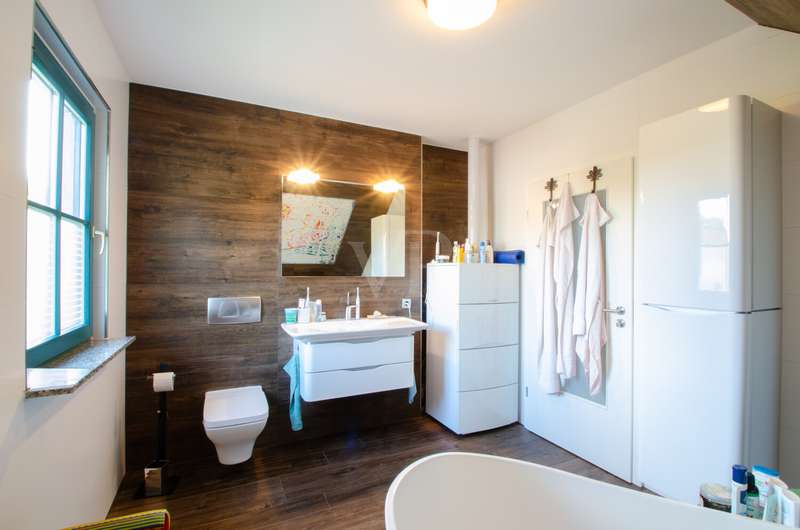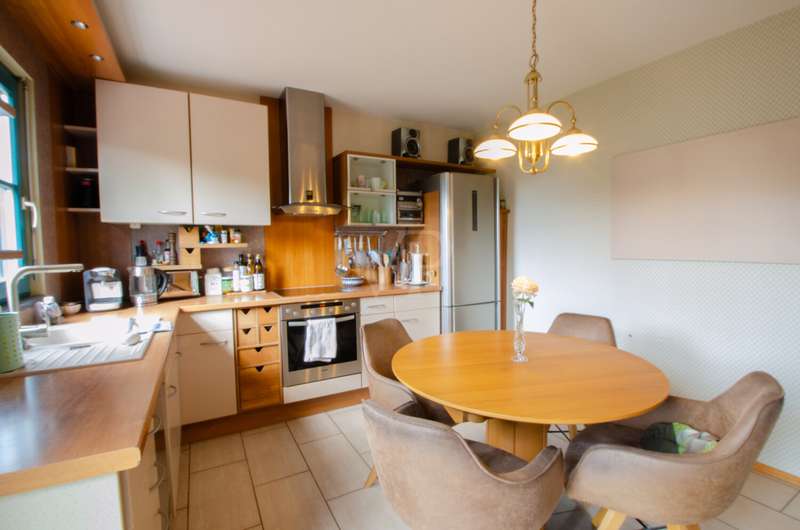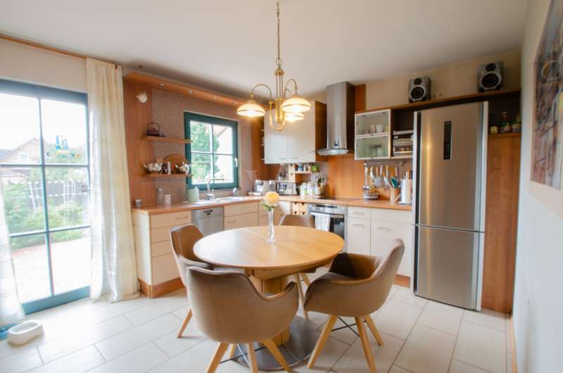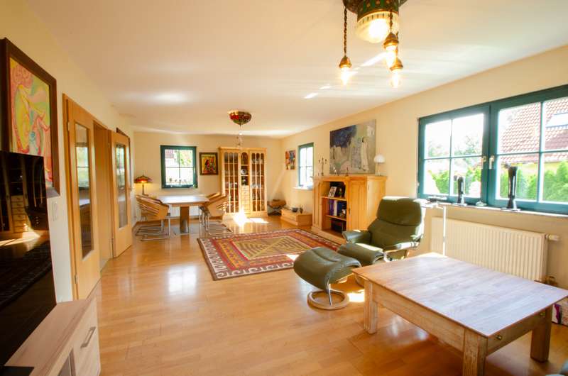 This attractive prefabricated house in low-energy construction from the Allgäu region offers you modern living with a well thought-out room layout and a high level of living comfort. The house, built in 1997 and completed in 1998, has a generous living space of approx. 160 m², spread over 6 rooms, and stands on a well-kept plot of 475 m² - ideal for families who value plenty of space, good facilities and a quiet location. Features & highlights - Low-energy prefabricated house (built in 1997, completed in 1998) - Living space: approx. 160 m² spread over 6 rooms - Plot: 475 m², easy to maintain and attractively landscaped - Full basement - additional usable space for hobby, storage space or home office, 2 fully-fledged guest rooms available - Gas heating (Vaillant) - renewed approx. 8 years ago - Wooden windows with double insulating glazing - 36 m² terrace - ideal for family celebrations and relaxed summer evenings - 2 modern bathrooms, approx. 10 years old, renovated to a high standard and equipped with a free-standing bathtub - Roof & façade energy-optimized: - Façade renewed approx. 5 years ago - Roof recoated approx. 8 years ago - Roof ceiling & facade insulated The house is located in a quiet building area of Eischleben, which impresses above all with its pleasant living atmosphere and good neighborhood. Thanks to its proximity to Erfurt, you can enjoy both the tranquillity of a rural environment and the benefits of excellent connections: - A71 & A4 highway access just a few minutes away - quick routes to Erfurt, Arnstadt and Ilmenau - Erfurt can be reached in approx. 15 minutes by car - perfect for commuters - Shopping facilities, schools and doctors can be found in the surrounding villages and in nearby Erfurt Conclusion This house combines energy efficiency, well-kept furnishings, generous living space and a family-friendly location. With its modern building services, high-quality renovated bathrooms, large terrace and quiet plot, it offers ideal conditions for a comfortable home in the immediate vicinity of the state capital of Erfurt. Move in & feel good - perfect for families who want to combine peace and quiet with proximity to the city!