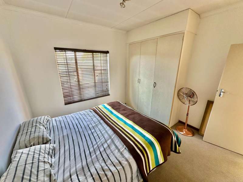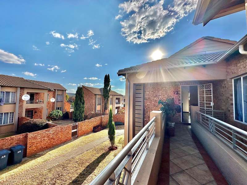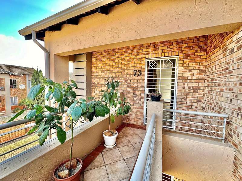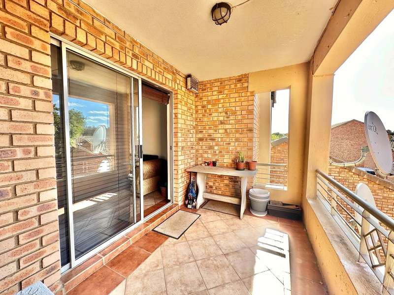 CHARMING 2 BED LOCK-UP AND GO CAT FRIENDLY TOWNHOUSE Welcome to this charming townhouse, located on the 1st floor in a secure estate in Equestria, offers a comfortable and convenient living space. It features two cozy carpeted bedrooms with built-in cupboards, providing ample storage. The full bathroom includes a shower, bath, toilet, and basin. The home is adorned with blinds throughout for privacy and style. The kitchen and living room are seamlessly integrated in an open-plan layout, with elegant tiles in the bathroom, kitchen, and living areas. Enjoy outdoor relaxation on the private balcony. This well-maintained property combines modern comfort with the security of estate living. Fibre Internet available. Fantastic amenities to enjoy in this Complex are 2 swimming pools, children's play area, walkways, Clubhouse, Dominos and Squash Courts. The beautiful gardens attract an array of birdlife. Top- notch Security for peace of mind. Contact us today to book your viewing!