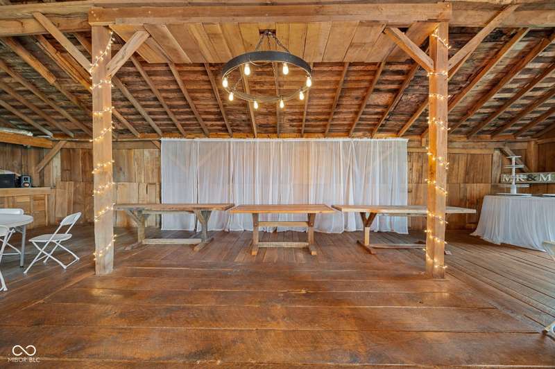 Welcome to The Gala Barn Venue-an idyllic 15.74-acre country retreat in Veedersburg, Indiana, perfect for weddings, events, or peaceful living. The property offers multiple buildings with water and electric, including the most beautiful barn you've ever seen-complete with bathrooms, party bars, tables, and decorations for weddings, birthdays, and more. There's also a rustic corn crib barn, chicken coop, workshop, decor storage, and even a silo that could be transformed into a unique bar or groomsmen's hangout. Enjoy dirt bike trails across 7 acres, a garden, and the peace of mind of a backup generator. This fully furnished 5-bedroom farmhouse features a bonus room, 1 bathroom, open-concept main floor, and a welcoming front porch-ideal as a bridal suite, bed & breakfast, or Airbnb. Whether you're dreaming of hosting events or starting a mini farm, the possibilities here are endless. Just minutes from Turkey Run State Park-this is one opportunity you don't want to miss!