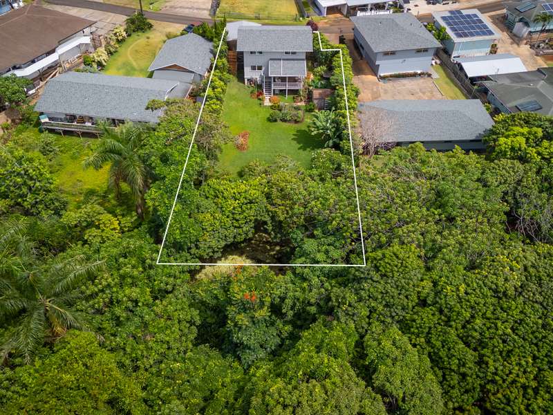 The home sits on a 10,788 sqft lot that borders the Nawiliwili Stream, and offers the potential to build an Additional Dwelling Unit. An ADU certificate and plans for a 2-bedroom home are included with the sale.