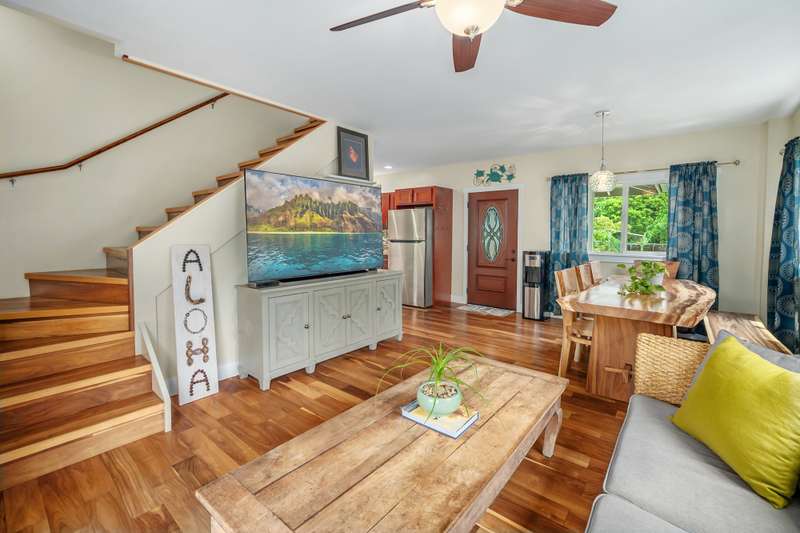 Charming two-story home in the heart of Lihue. A true surprise awaits you as you head down a quaint road and arrive at this beautiful and well cared for 3-bedroom, 2-bathroom home built in 2016.