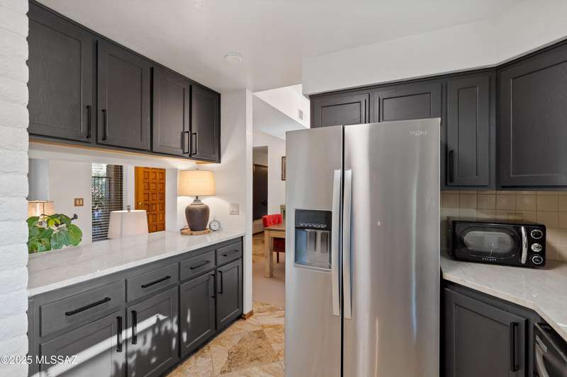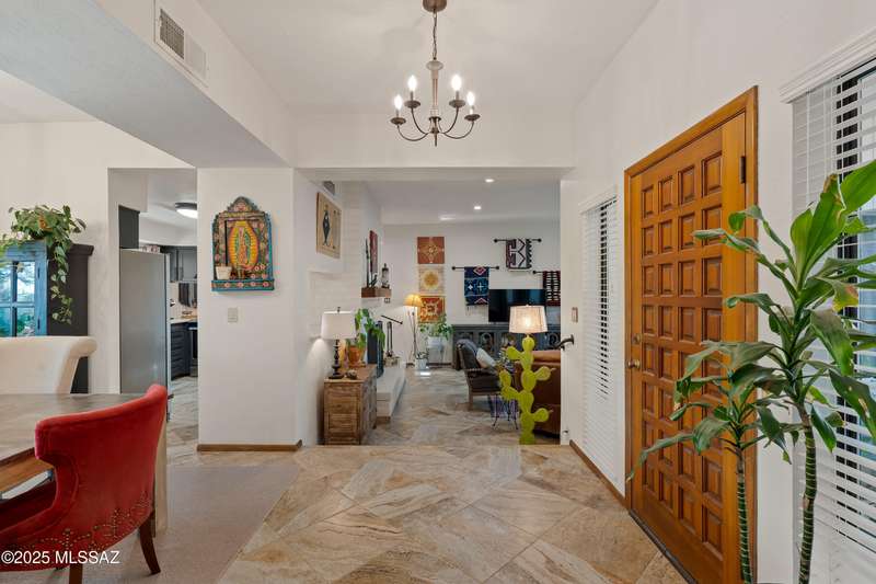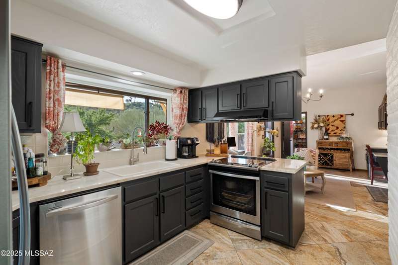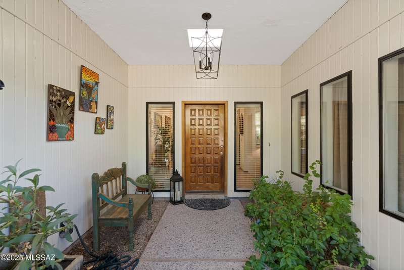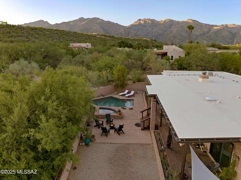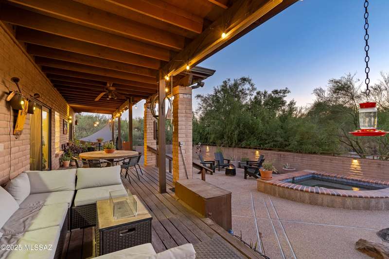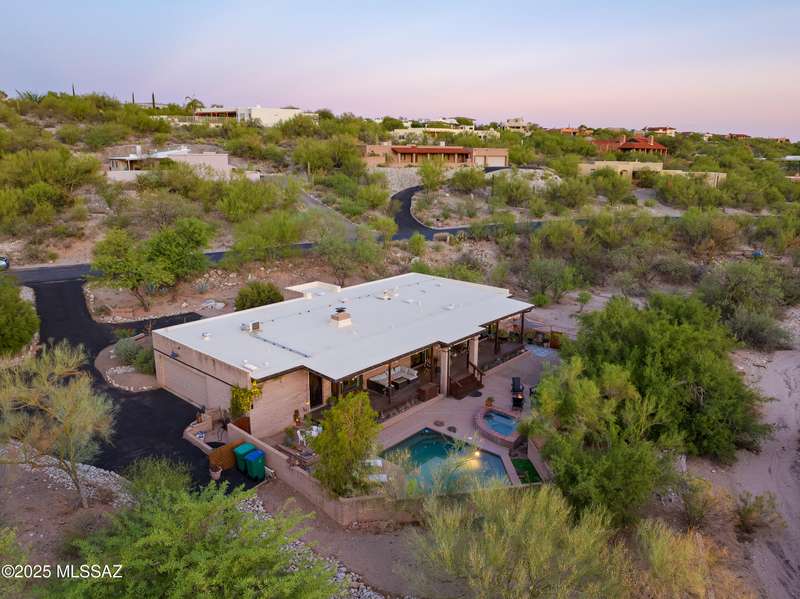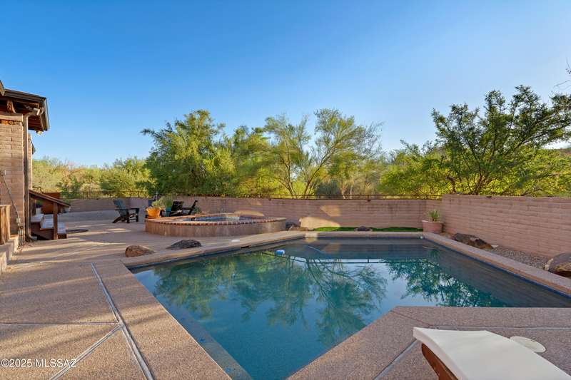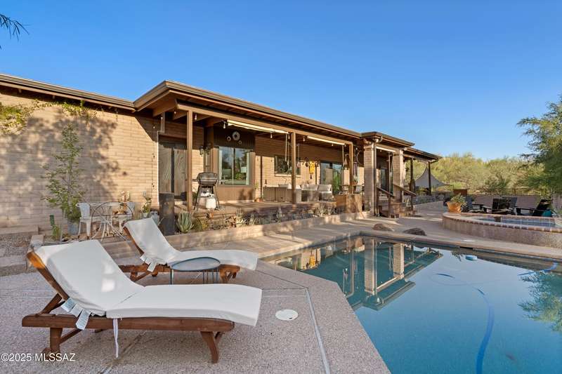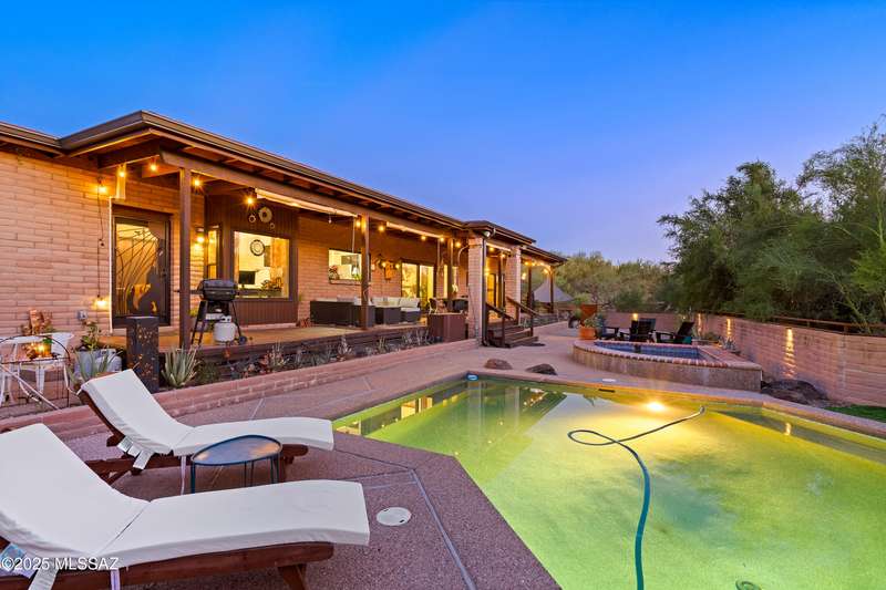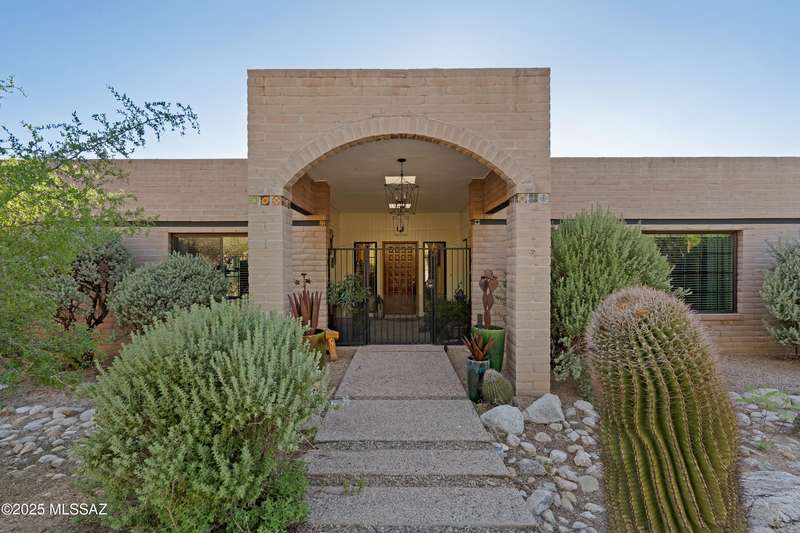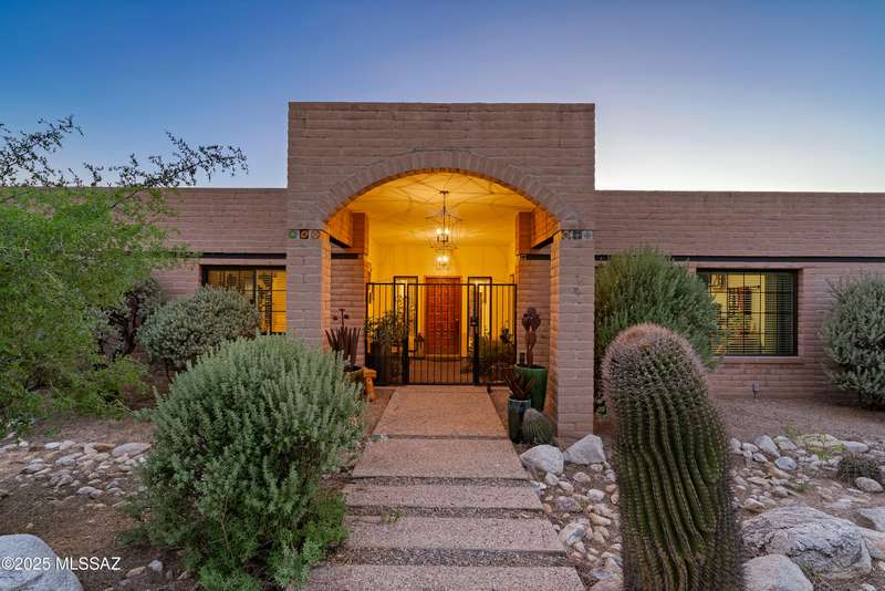 Located in the scenic Foothills of Tucson, this home offers gorgeous sunset and mountain views. Situated on .9 acre and surrounded by lush natural desert. The pebble tec pool, spa and covered patio are perfect for entertaining, relaxing and enjoying desert wildlife. The charming front entry is gated providing additional security. Ceramic tile flooring throughout the home and triple-pane windows that fill every space with natural light. Kitchen and bathrooms recently updated. New windows and sliding doors throughout the home. Low HOA fees.
