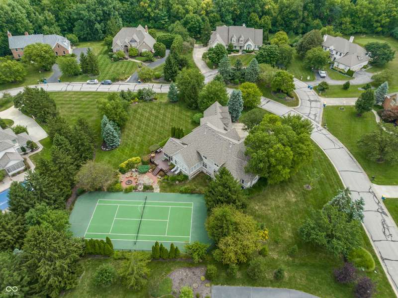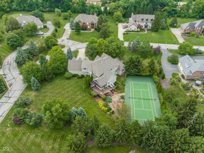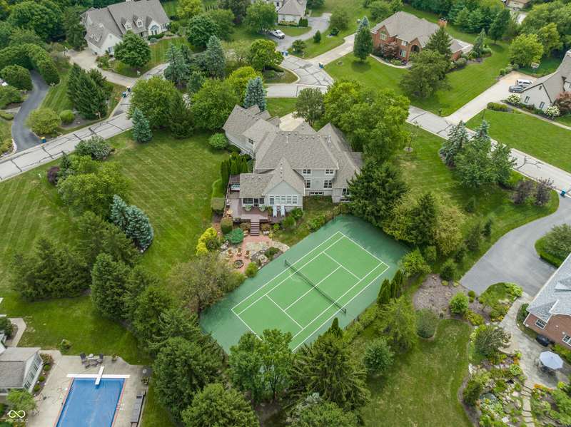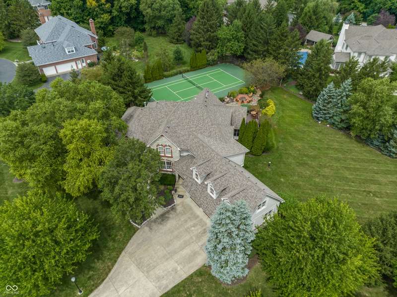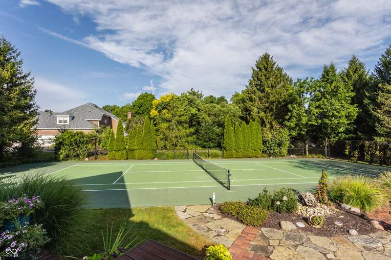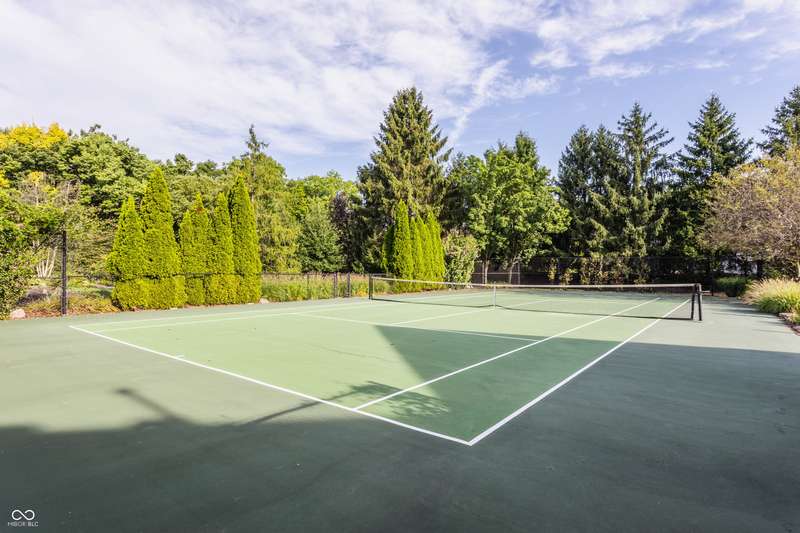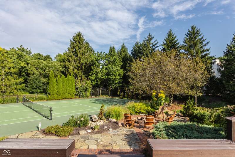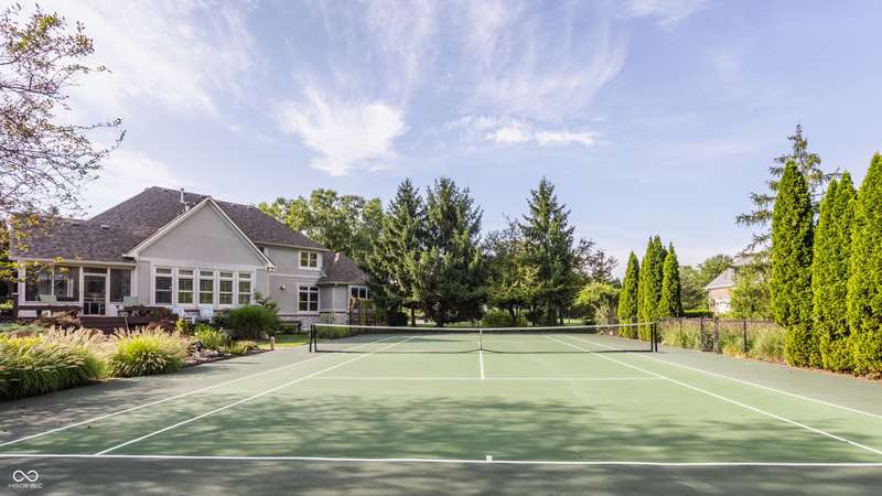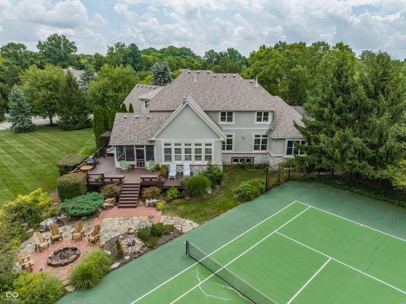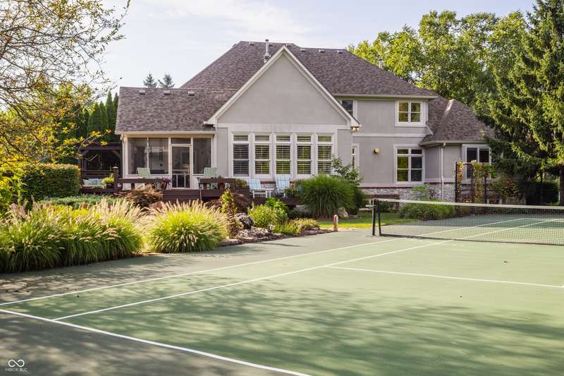 Calling all pickleball and tennis lovers! Nestled in the desirable Bolander Woods community, this exceptional home sits on a 1.05-acre lot and features its very own private tennis court (easily converted for pickleball)! Step inside to a welcoming entry and family room with a beautiful gas fireplace, perfect for cozy gatherings, and a formal dining room adorned with crown molding. On the main floor, you'll also find a luxurious primary suite with an updated spa-like bath, complete with a soaking tub and walk-in shower. The chef's kitchen is equipped with double ovens, a new gas cooktop, and a cozy breakfast area with built-ins, perfect for both everyday meals and hosting. A den with custom built-ins provides the ideal work-from-home space. Upstairs, four generously sized bedroom suites offer comfort for family or guests, while the finished basement is all about fun and relaxation, complete with a home theater, rec room with wet bar, exercise room, and full bath. Outdoors includes a large screened porch, multi-layered wrap-around deck with pergola and daybed, and a stone patio with firepit next to the court. From indoor comforts to outdoor recreation, this home delivers a lifestyle you'll love. Neighborhood features a large common area perfect for nature lovers and dogs!